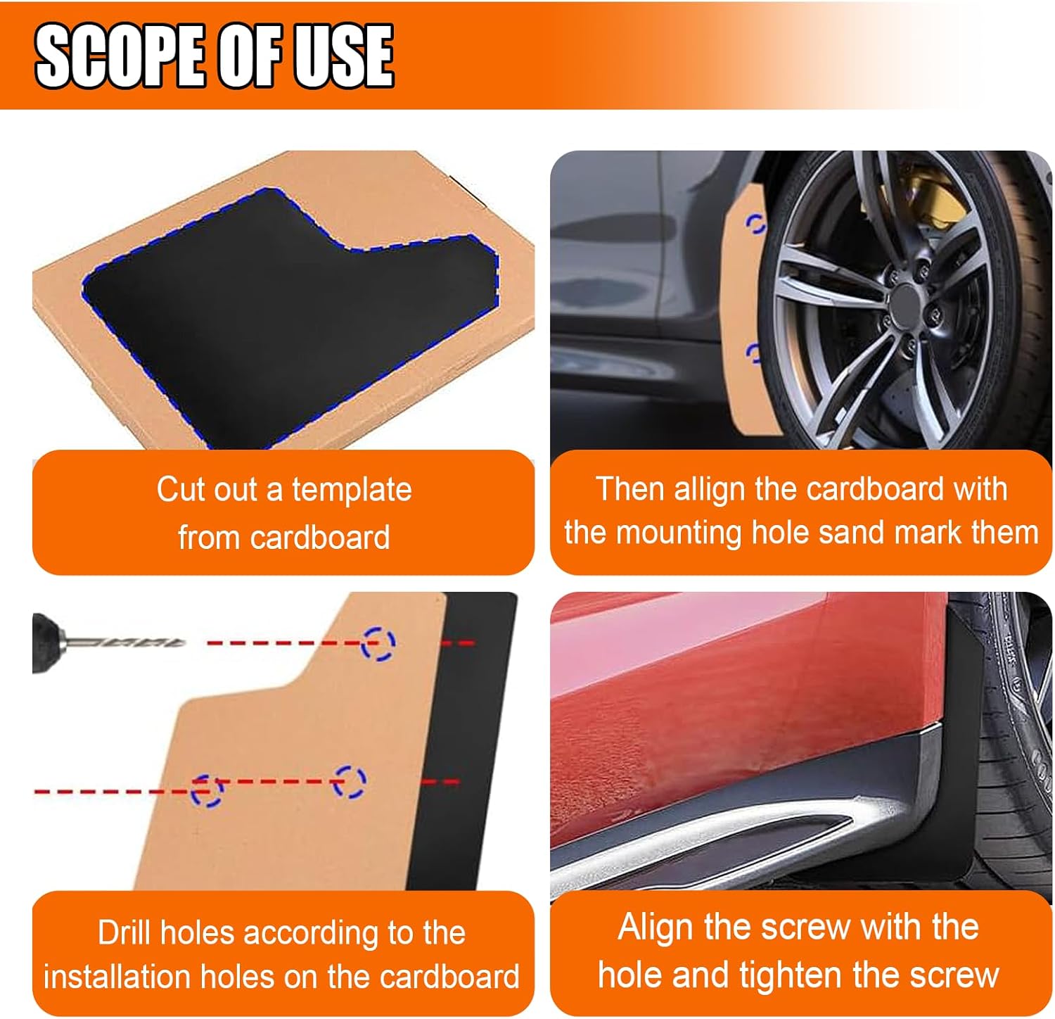 【Easy to Install】: Installation requires minimal effort with basic tools—simply align each flap with your vehicle’s pre-existing mounting points and secure using provided fasteners. This drill-free, non-invasive mounting approach eliminates any permanent modification to your vehicle’s structure while ensuring perfect alignment and stable attachment that remains securely in place through various driving conditions.
