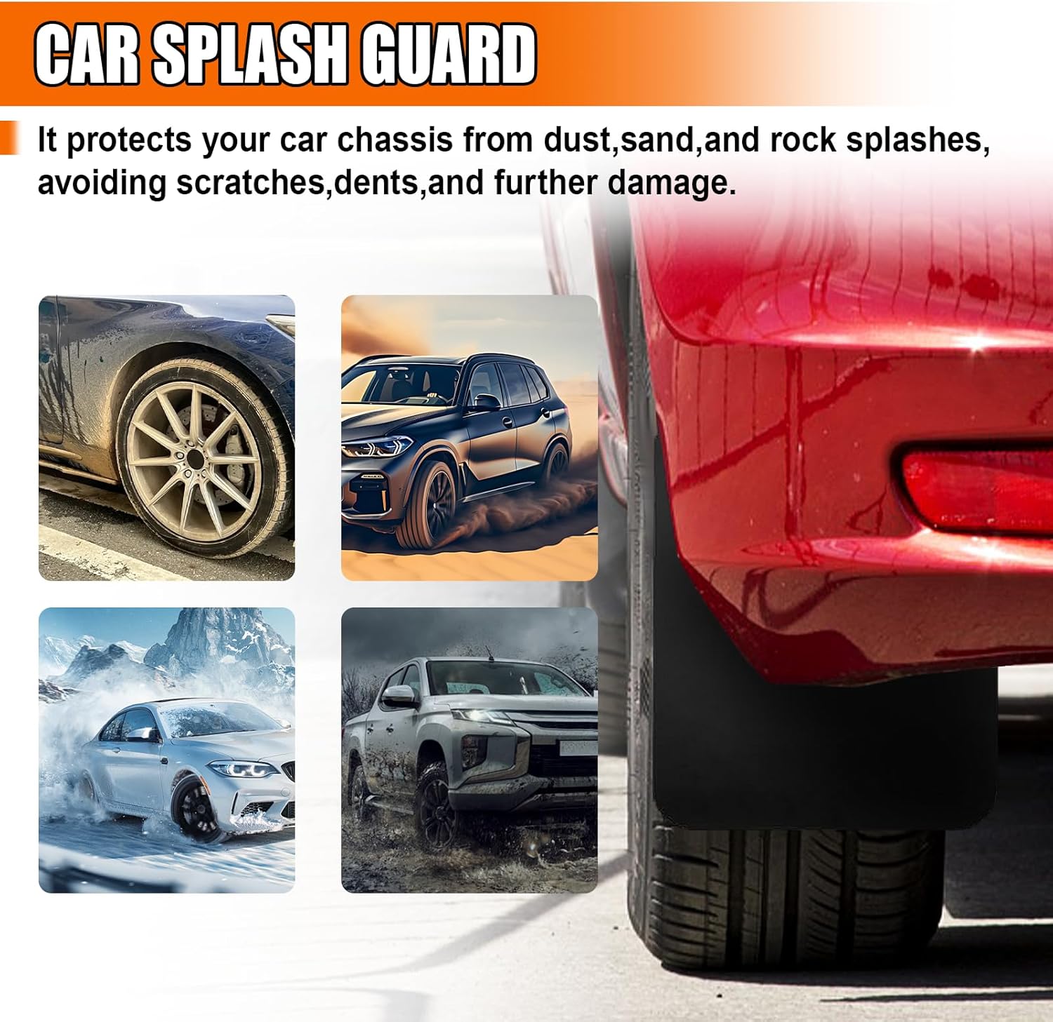 【Great Protection】: These mud flaps create a definitive protective shield for your vehicle’s undercarriage and bodywork, effectively deflecting road spray, snow, salt, gravel, and assorted debris encountered during driving. Their resilient construction acts as a barrier against dust accumulation and stone chips, significantly minimizing potential paint and component damage while enhancing your driving confidence across diverse road conditions.