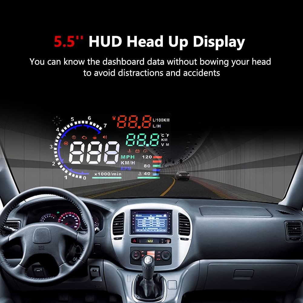 –SAY GOODBYE TO ACCIDENTS: The head display is designed to display the car dashboard information at driver’s front sight to avoid breaking traffic rules due to reading dashboard. The auto power on and off design means HUD works on while the car runs, and it will stop the service while your car powered off.