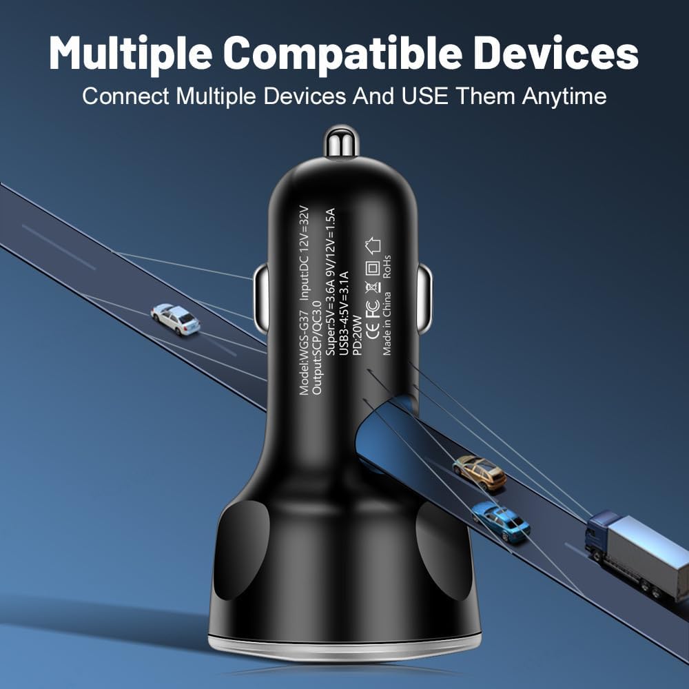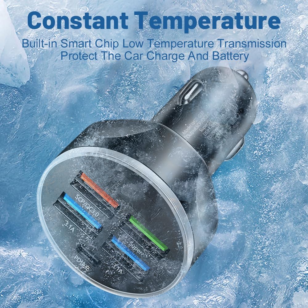 🚗[MULTIPLE SAFETY PROTECTION】This multi-port car charger adapter has built-in multiple protections for overcurrent/overheat/short circuit/circuit/overvoltage/high temperature to ensure stable current output.