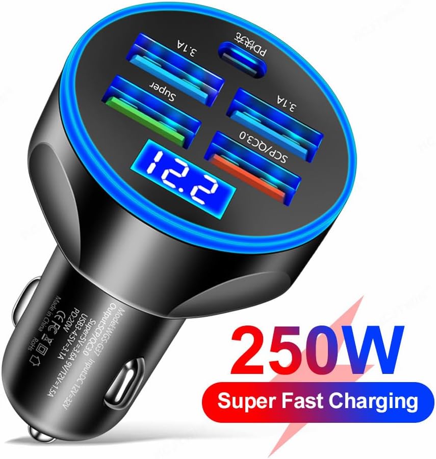 🚗[VOLTAGE DETECTION】Cigarette lighter USB charger monitors your car’s battery and electrical system and displays the car’s voltage on the screen.The 5-port USB charger adapter is suitable for electric cars, cars and trucks.