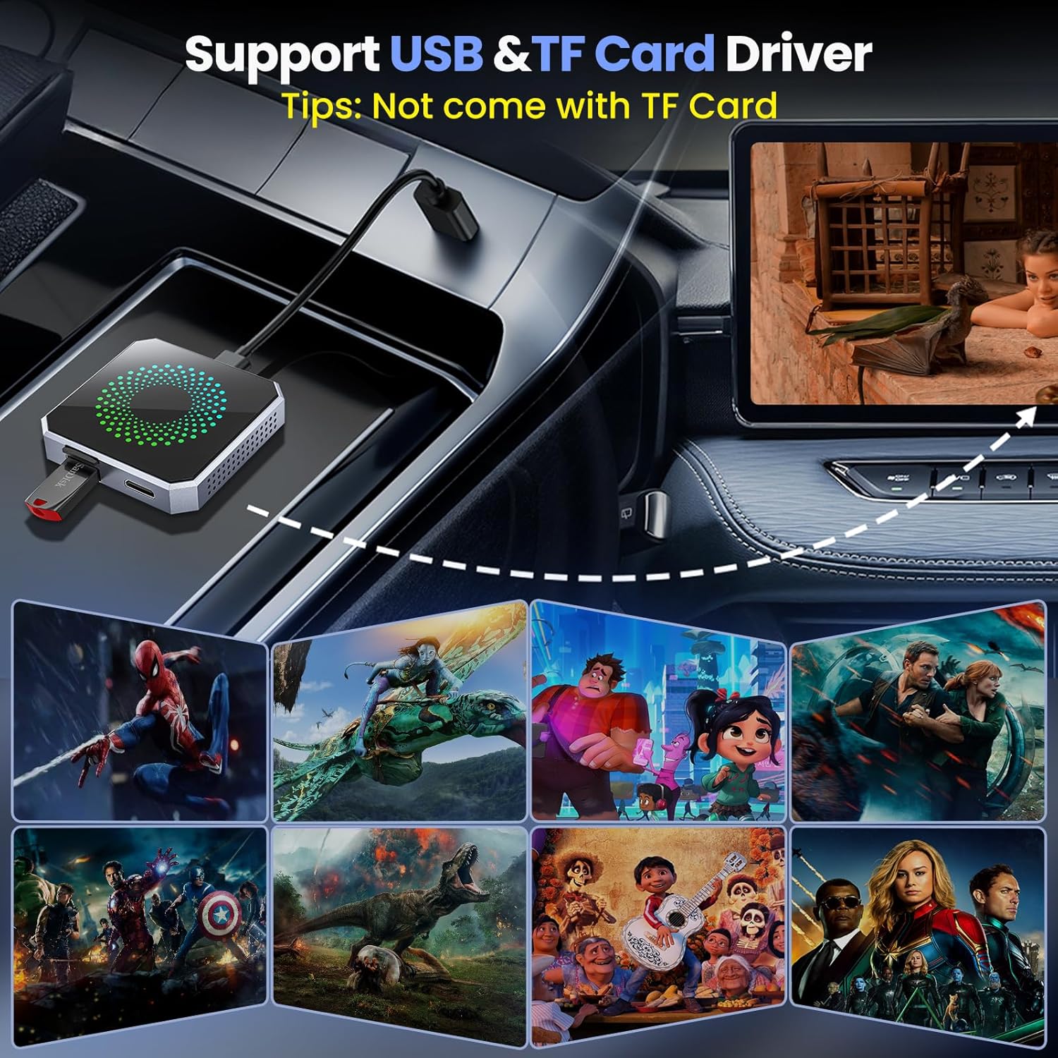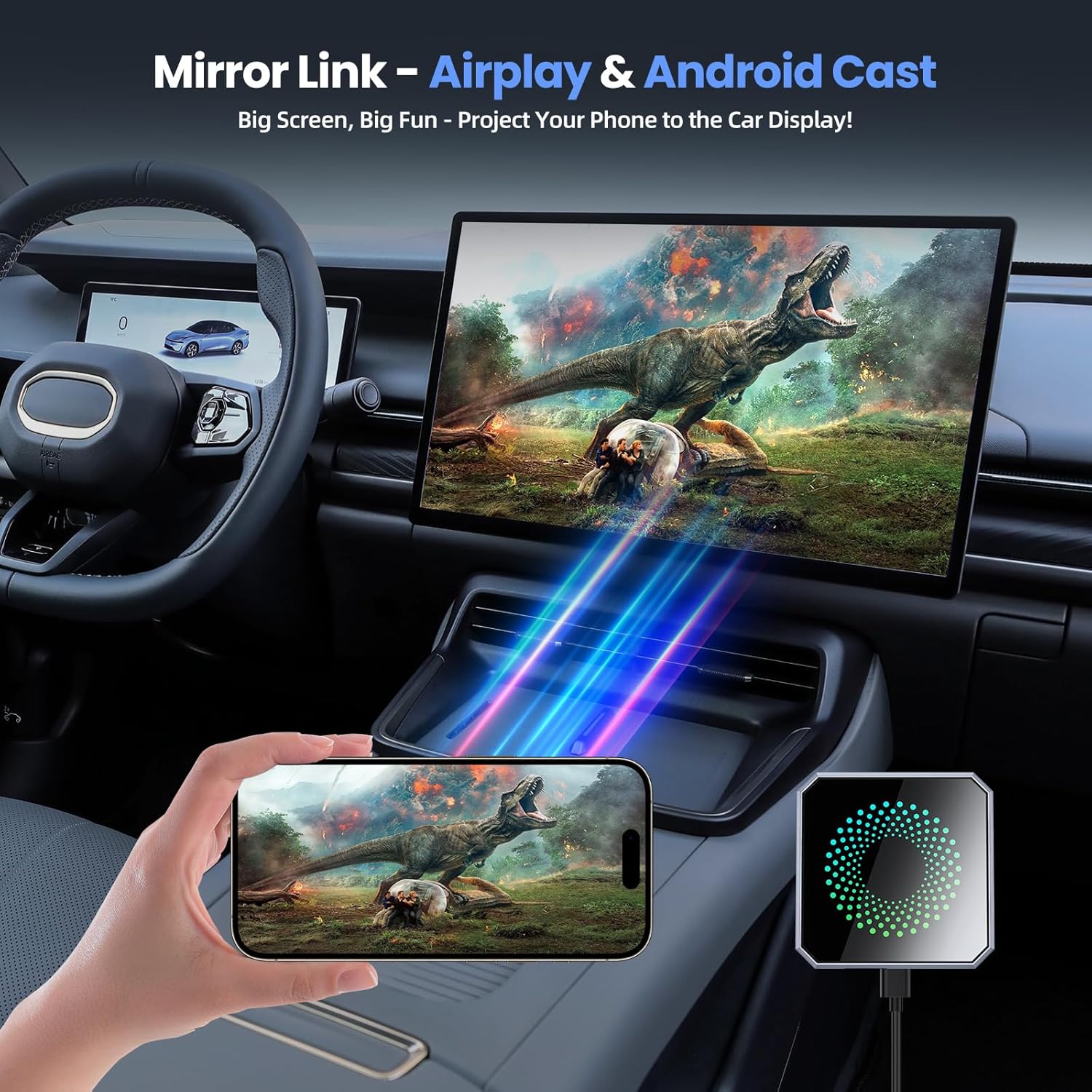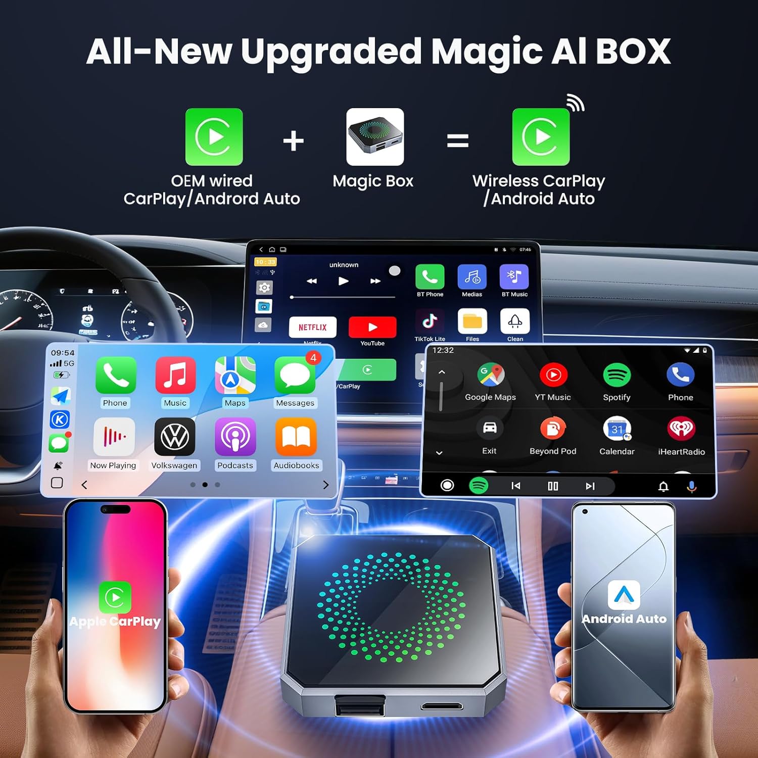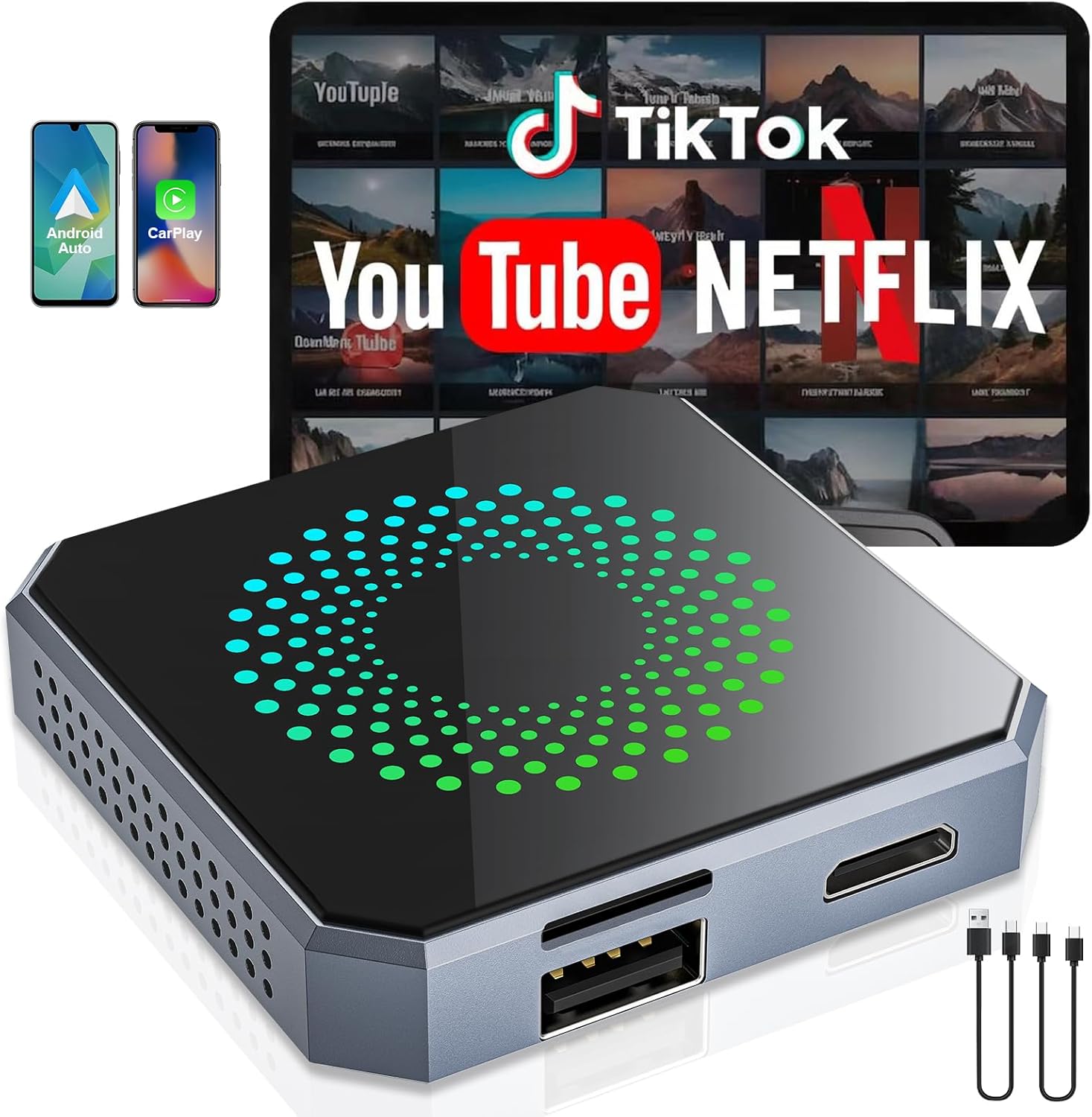 🚗【Wireless CarPlay & Android Auto AI Smart Box – 3-in-1】 This all-in-one AI Box combines Wireless CarPlay, Wireless Android Auto, and video apps in one compact device. Convert wired CarPlay / Android Auto to wireless, eliminating cables and enabling seamless auto-connect every time you start your car. Turn your car’s display into a smart entertainment hub—watch YouTube, TikTok, and more when connected to WiFi or a mobile hotspot.
