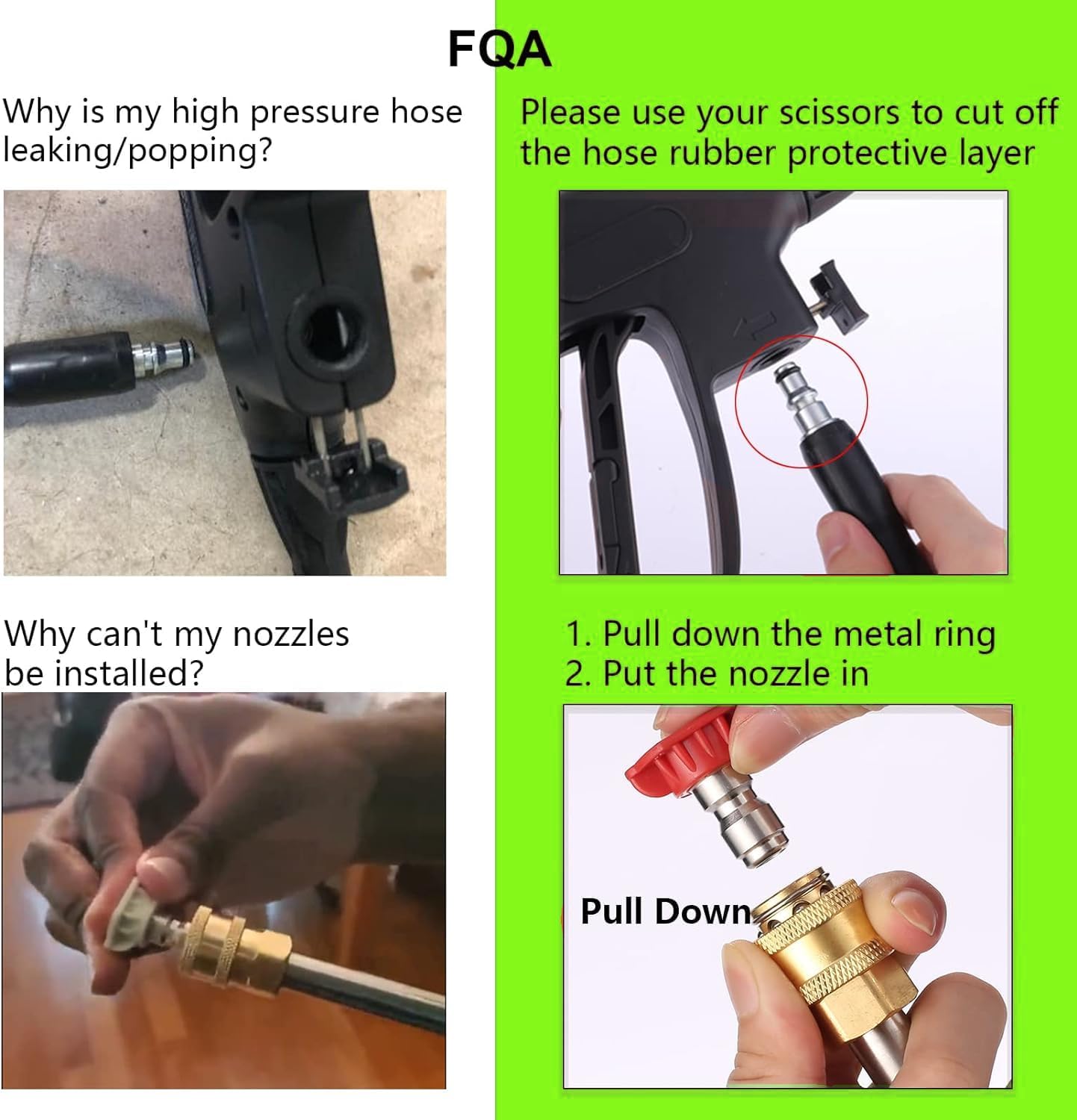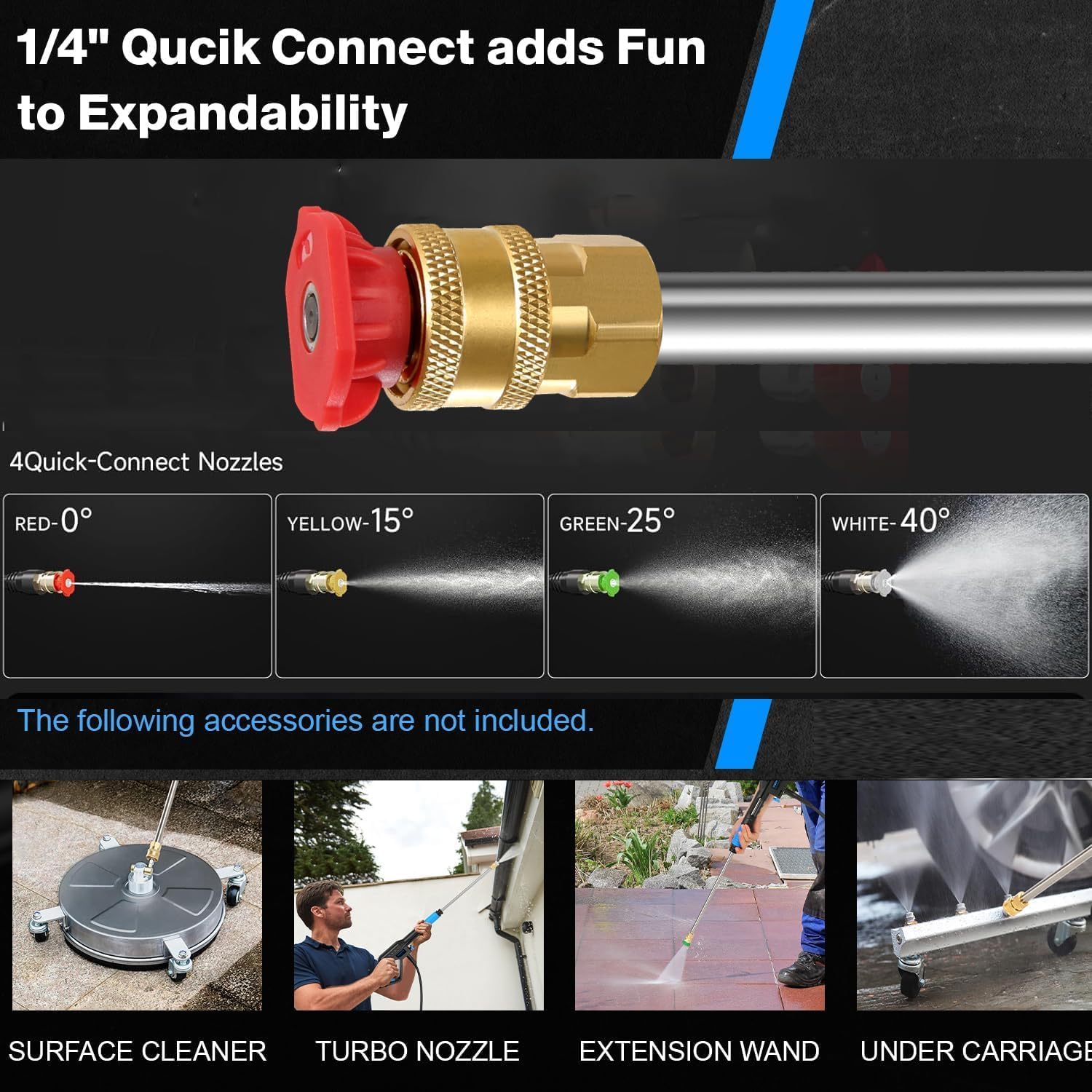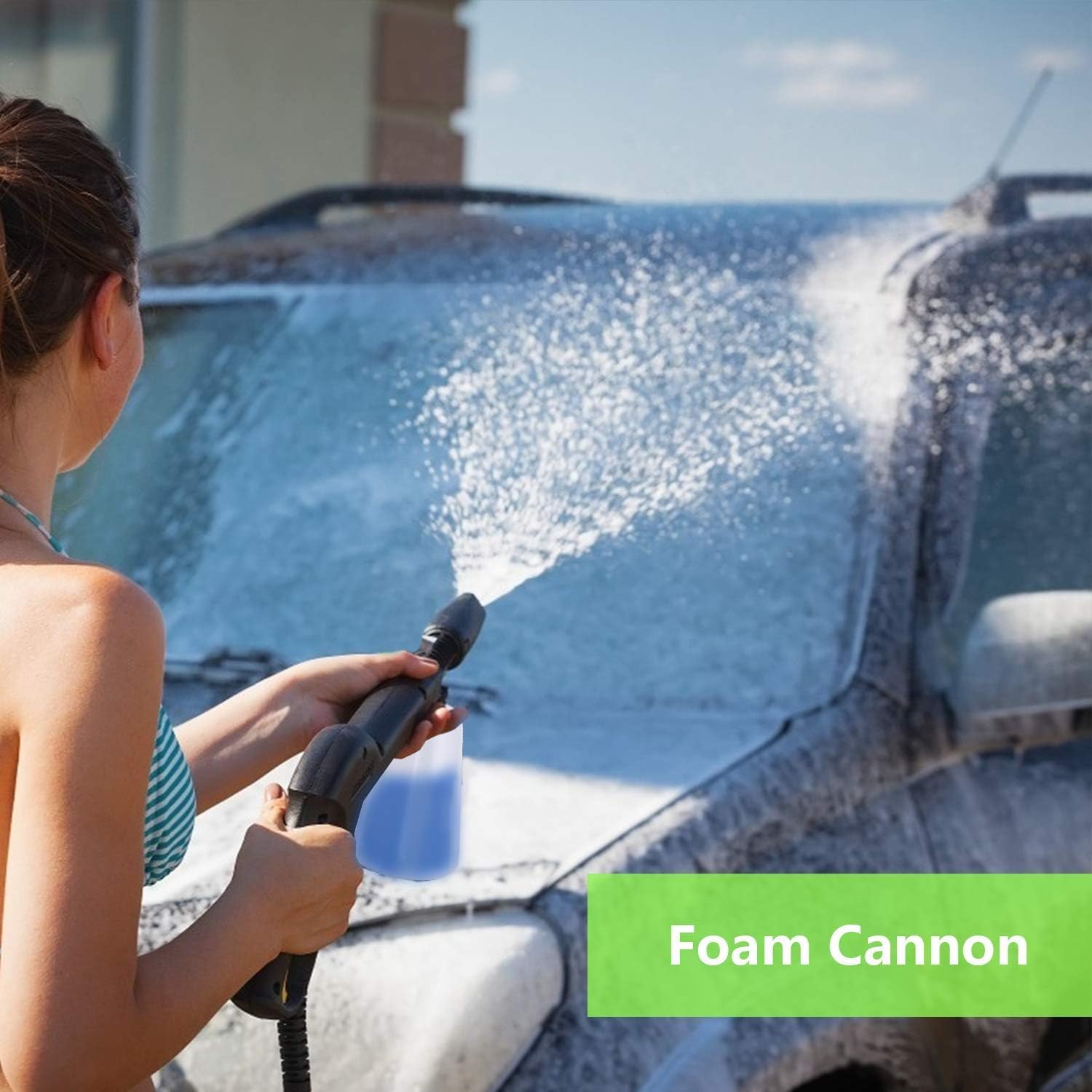 Customizable Cleaning Solutions: Switch up your cleaning routine with 4 quick-connect nozzles, perfect for everything from blasting stubborn dirt to gently cleaning delicate surfaces. The foam cannon adds a pro-level touch to your car wash routine.