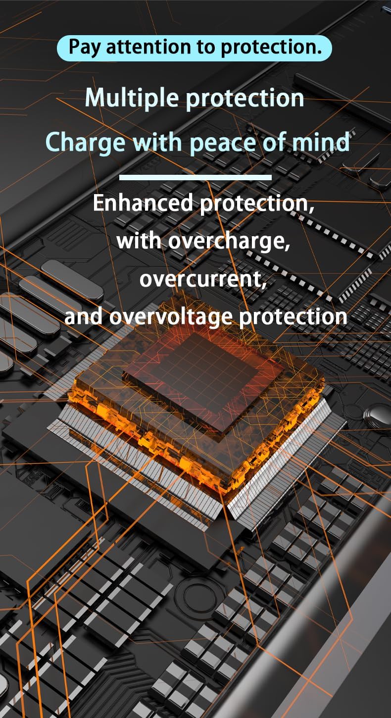 Safe & Durable: Constructed from flame-retardant PC material, with multiple protections against overcharging, overcurrent, and overvoltage.