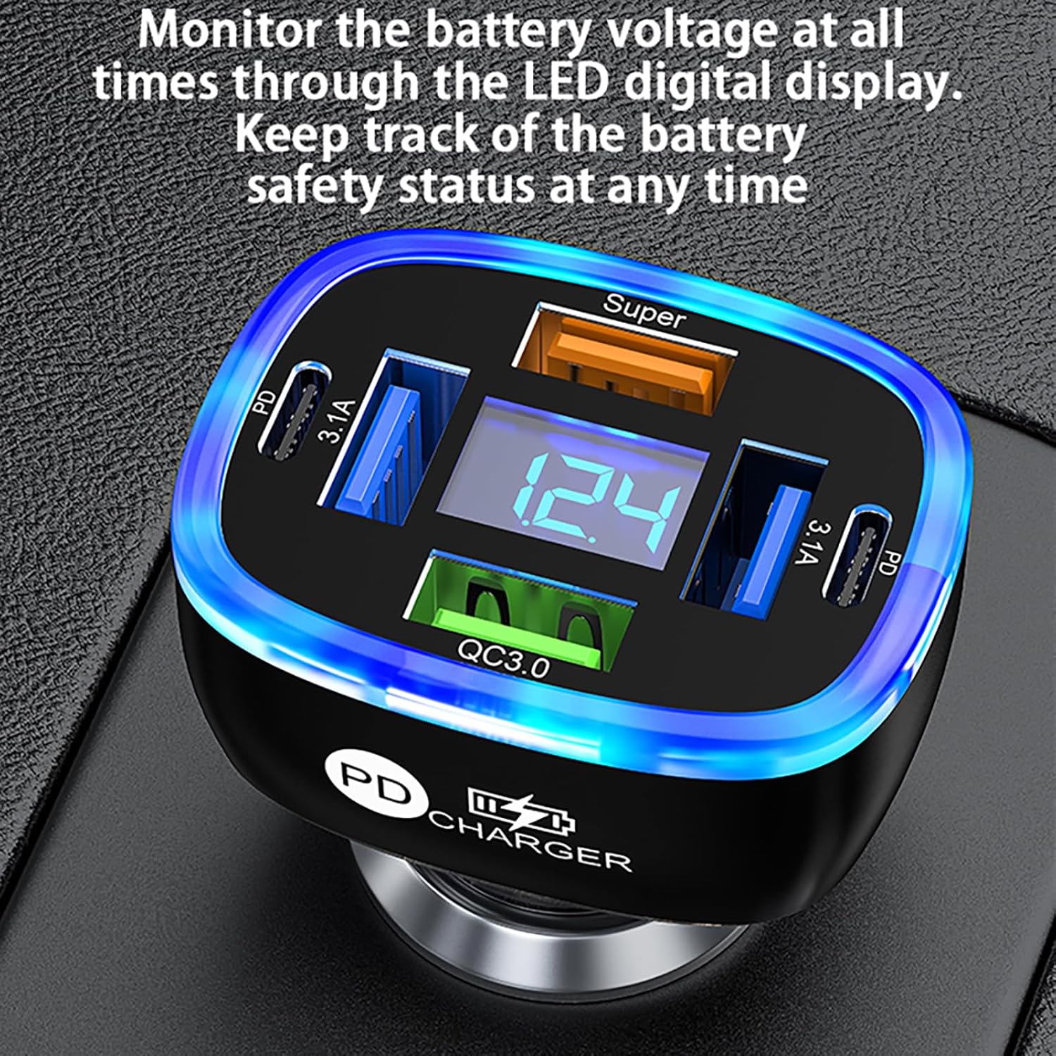 This smart car charger is a game-changer! Its digital display clearly shows charging status, even in low light, thanks to its illuminated design. Incredibly fast, it powers up devices quickly and efficiently. Compact yet powerful, it’s perfect for on-the-go charging. A must-have for anyone needing reliable, high-speed charging in their vehicle.