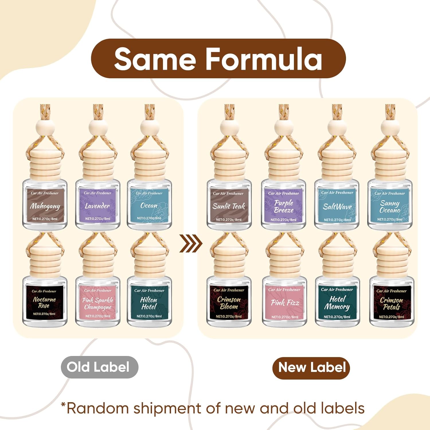 【6 Unique Fragrance】Ocean, Moonlit Gardenia, Nocturne Rose, Vanilla Cream, Mahogany, Lavender. Choose according to your preferences and bid farewell to monotony. Each bottle of 8ml can effectively eliminates unpleasant odors inside the car, such as food, pets, smoke, leather, etc