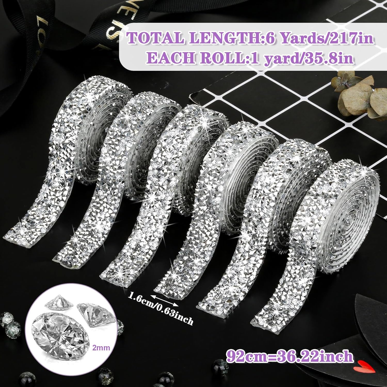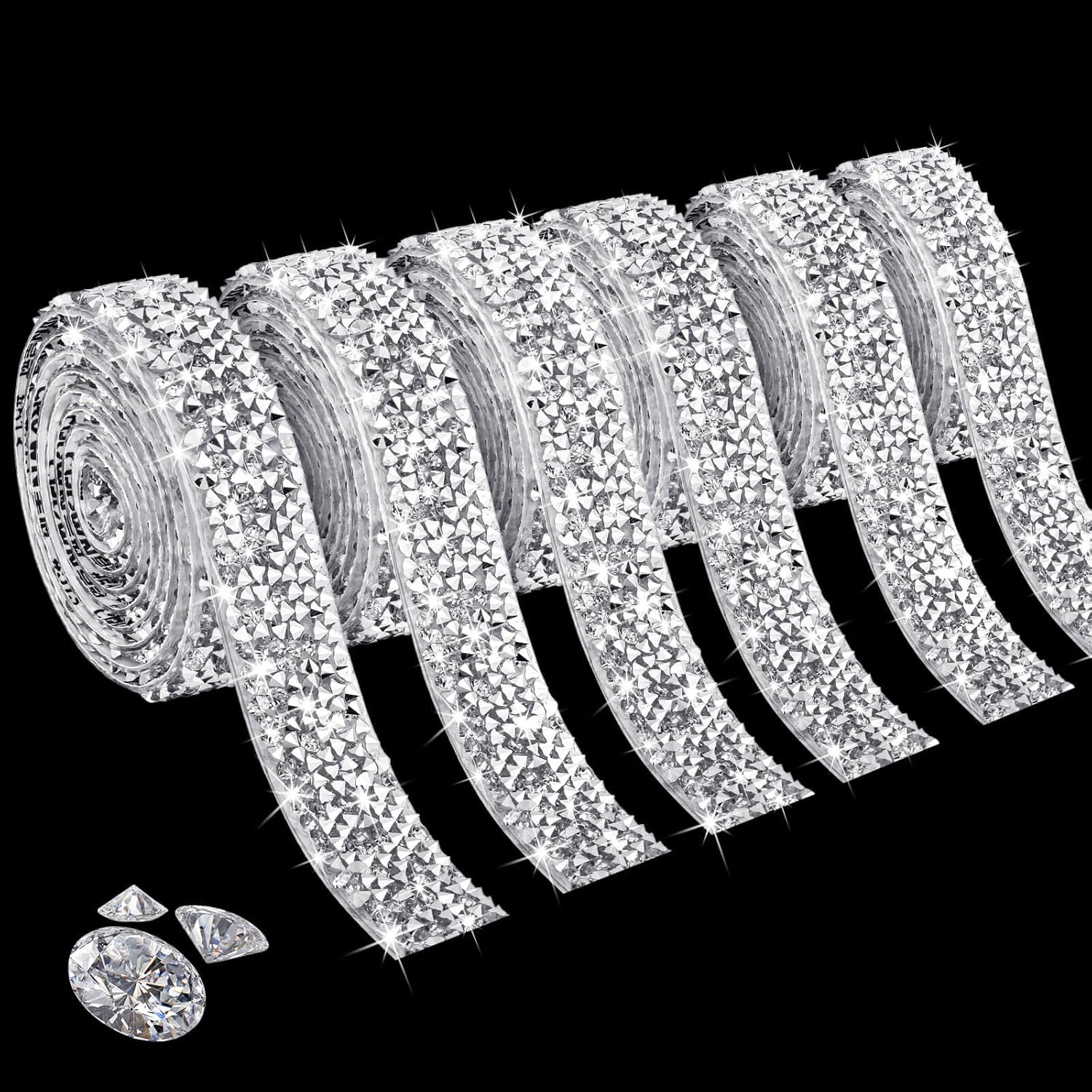 【Package and Dimension】There are 6 rolls of self-adhesive rhinestone ribbon rolls. each registration is about 1 yard/92cm in length. The size is 0.6 inch/1.5cm in diameter. enough for your daily use. 6 rolls Rhinestone Ribbons