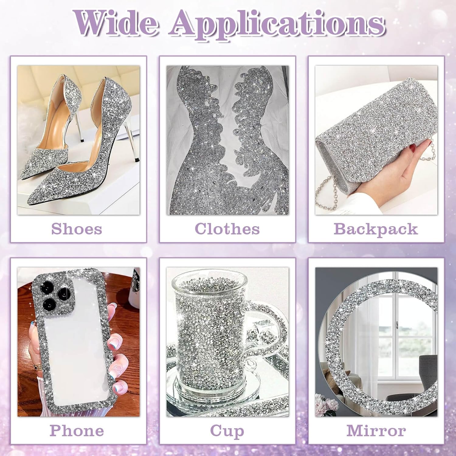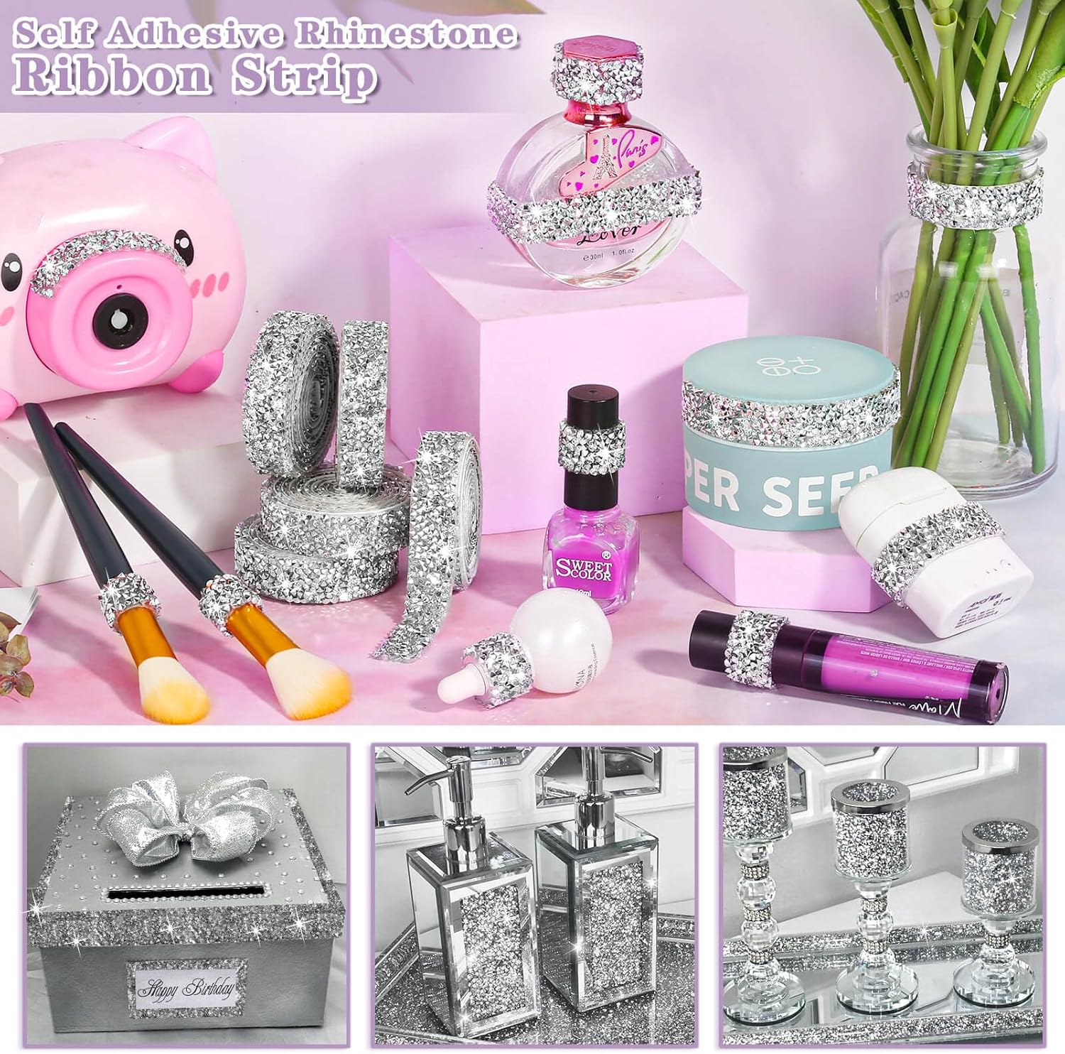 【Easy to Use】Just cut the rhinestone sheets self adhesive to the length you want, tear off the self-adhesive backing paper, and press on the desired surface to get a beautiful decoration effect