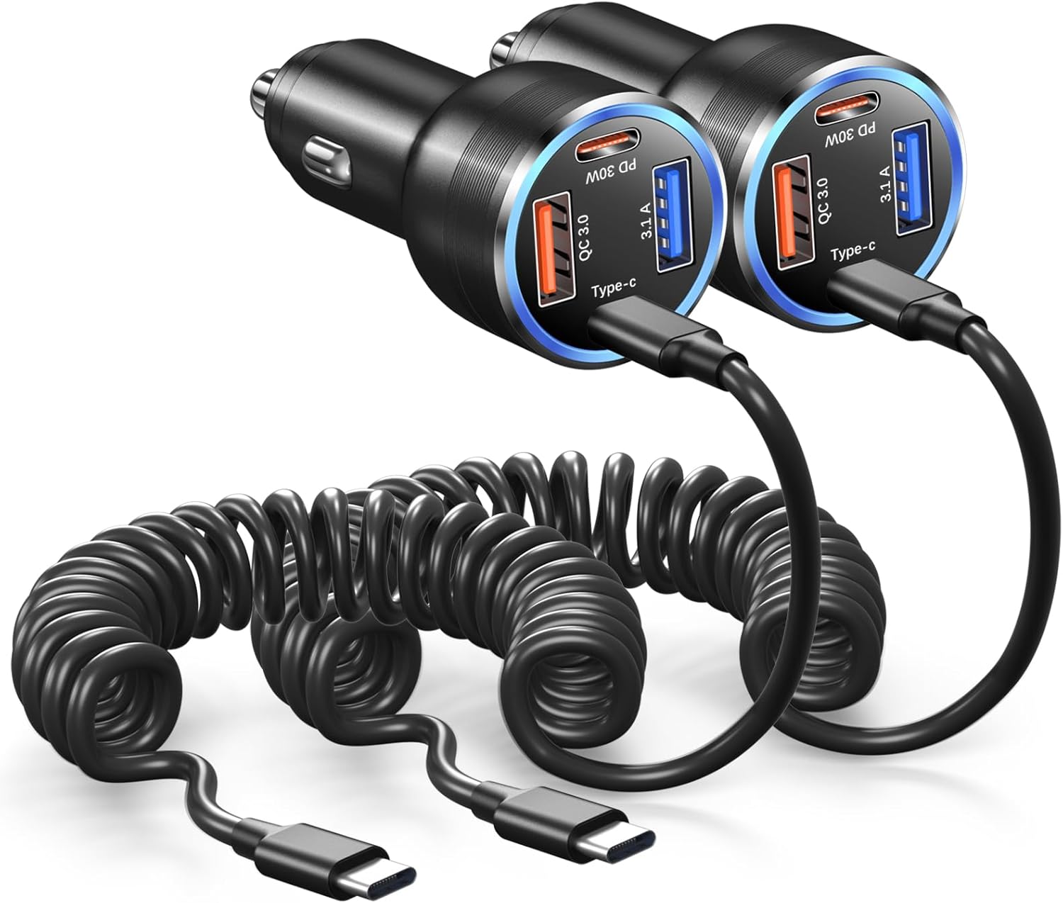[What You Get] 2 Pack 65W Super Fast Car Charger USB C Adapter+5FT USB-C Coiled Cable. As a newborn brand, we care customer most. Provide high quality products and prompt customer service is our goal. If you receive any defective chargers or have any other problems of our products, please feel free to let us know.