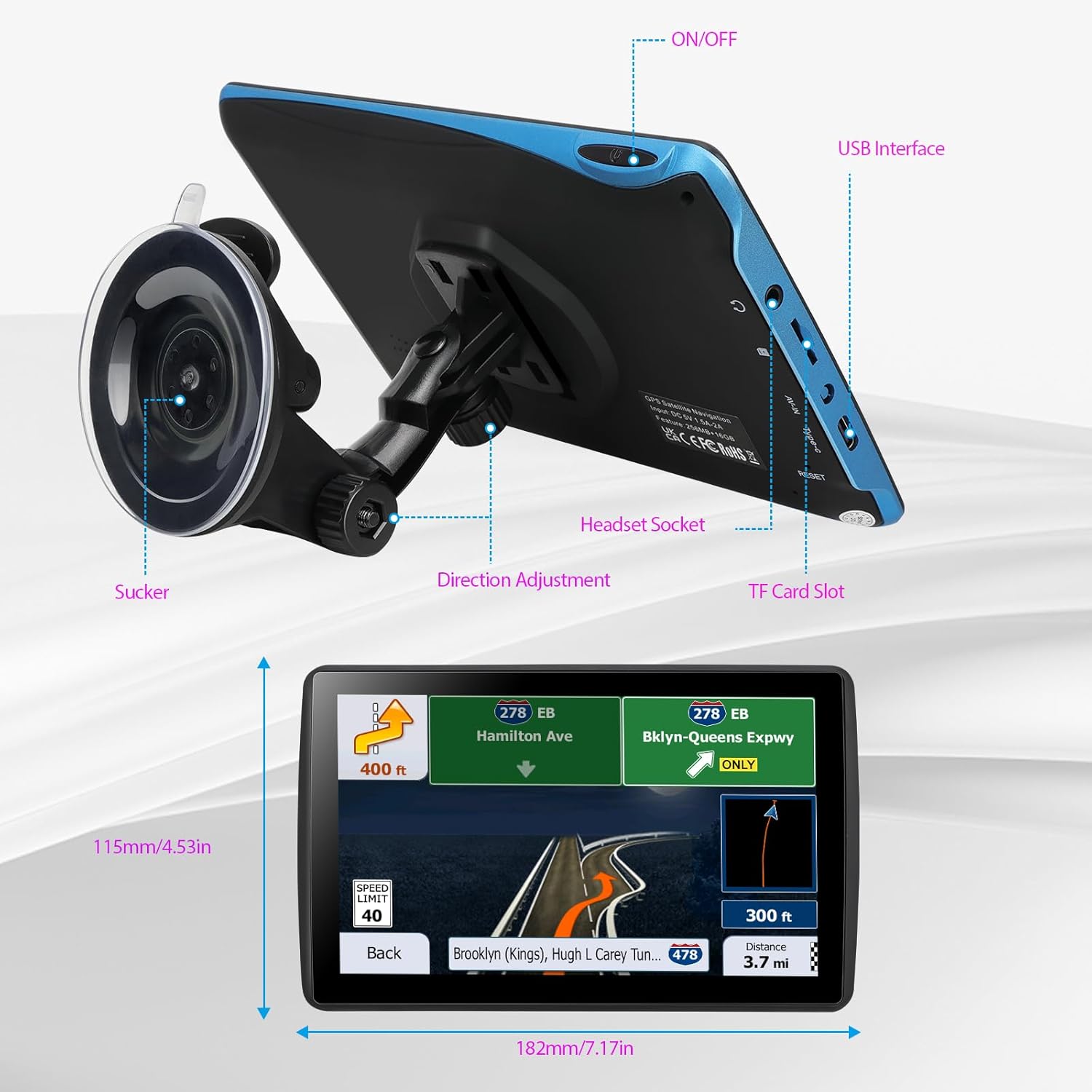 7” GPS Navigator for Car Truck RV – 2026 North America Maps Free Lifetime Updates, Touchscreen Navigation System, Speed & Red Light Warning, Turn-by-Turn Voice Guidance, for All Cars (Blue)