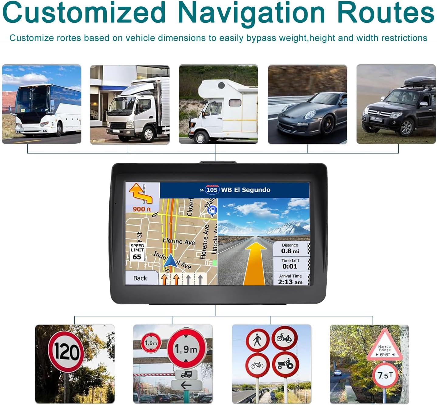 Customized Routes: Your handheld GPS device can find the best route to your destination using accurate maps. Finding your destination is easy: just enter an address, GPS coordinates, or a point of interest such as a parking lot or gas station. GPS navigation supports four route options – Fast/Green/Short/Convenient Truck GPS can customize routes based on the weight, length, height and width of your vehicle to avoid roads with width/height/weight restrictions.