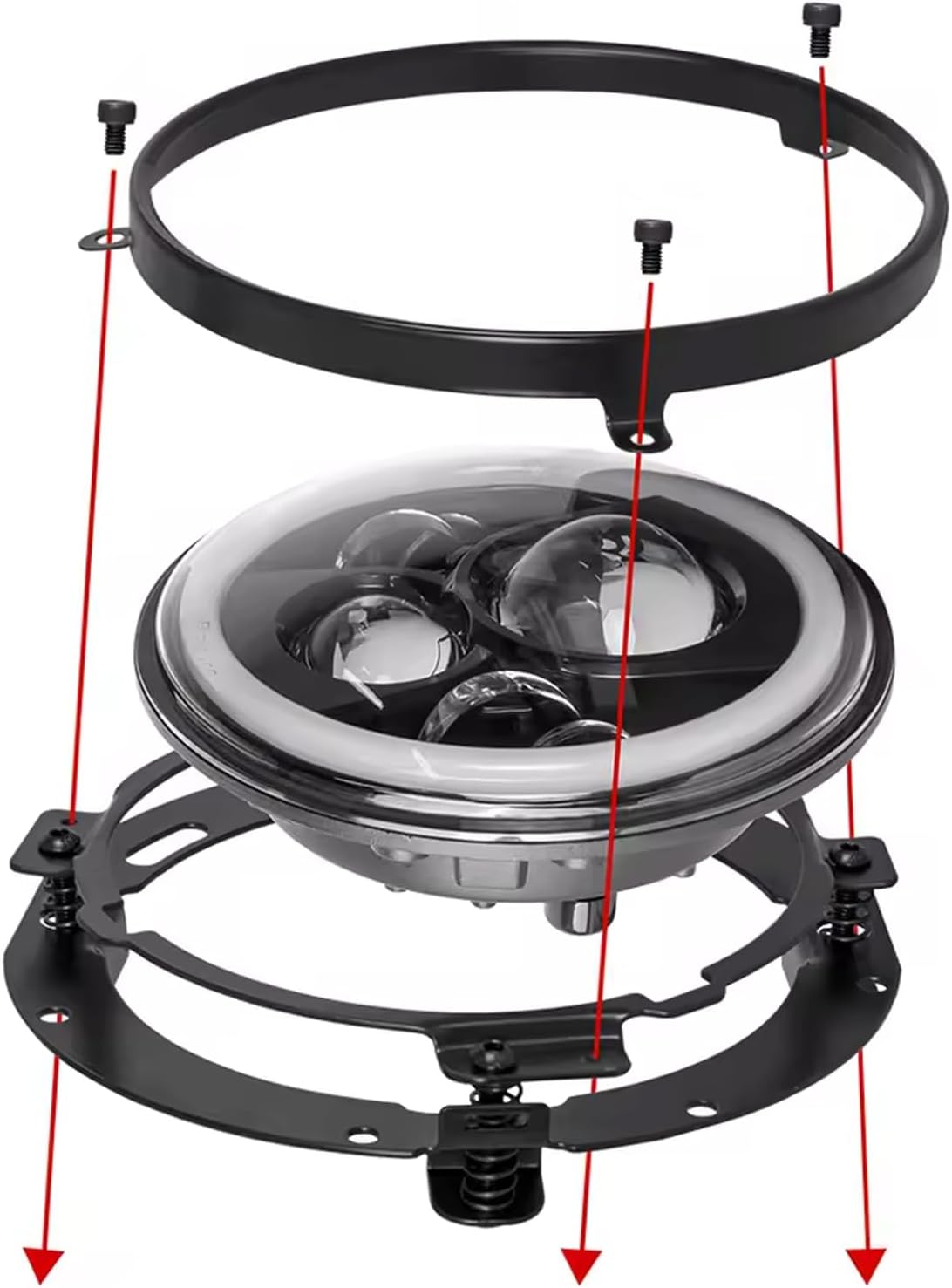 The 7-inch circular LED headlamp bracket is engineered to provide a perfect fit with your Harley motorcycle, ensuring seamless integration without any modifications. It not only upgrades the aesthetics but also enhances the functionality of your headlamp by adding a touch of sophistication with its annular design.