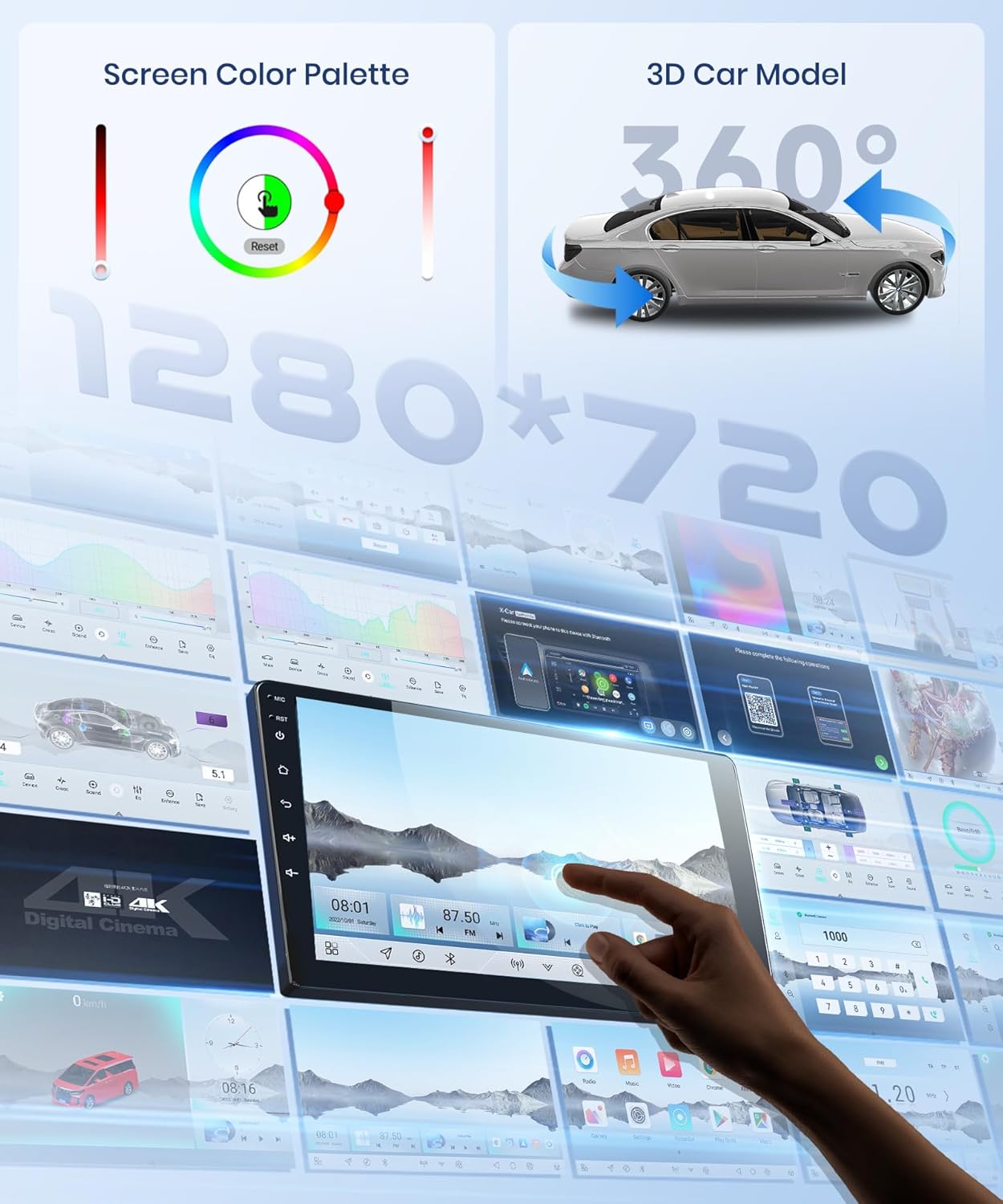 3D Car Model Display Custom Home APP and UI: for 2011 Ford Escape radio through high-precision three-dimensional modeling technology, the vehicle appearance and interior details are restored at a ratio of 1:1. Users can freely choose different models and body colors, and rotate 360°to view the overall effect. Support custom home APP display and UI selection.