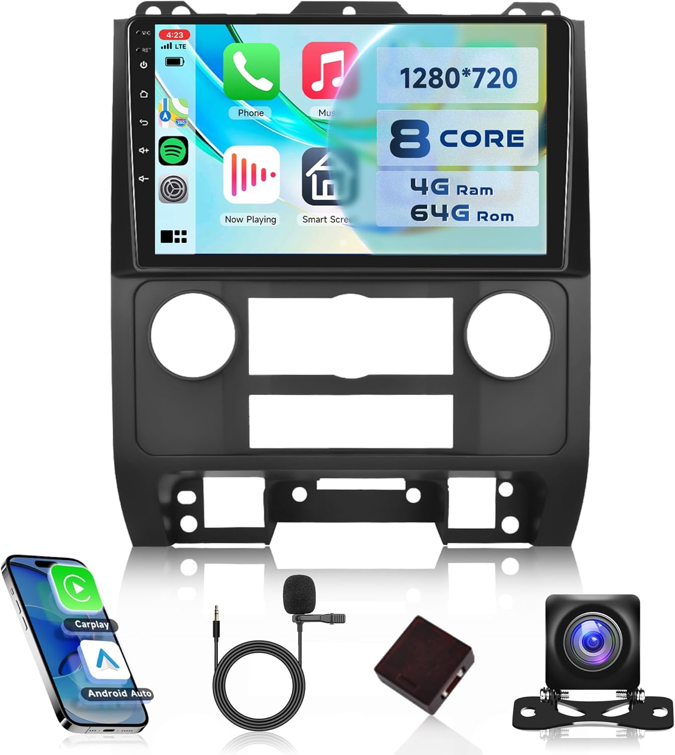 8 Core Qualcomm Snapdragon chip for Ford Escape radio 2007-2012: Qualcomm Snapdragon chip provides powerful core power for in-vehicle multimedia systems with its excellent performance and high energy efficiency. An 8-core CPU clocked at 1.8GHz boosts processing muscle, enabling effortless multitasking. The 4GB RAM+ 64GB ROMensures instant responsiveness and lag-free performance, while 64GB ROM provides ample storage for media, maps.