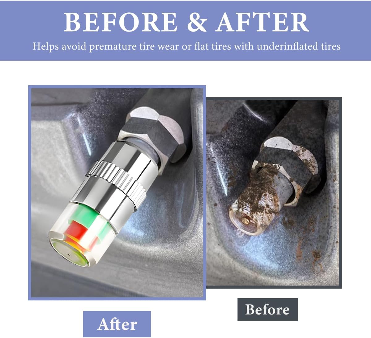 Versatile Options: This tire pressure monitor is available in packages of 4 and 8, with sufficient quantities to meet your usage requirements. They are supplied in silver and gold color options, allowing you to choose the color that best suits your aesthetic preferences