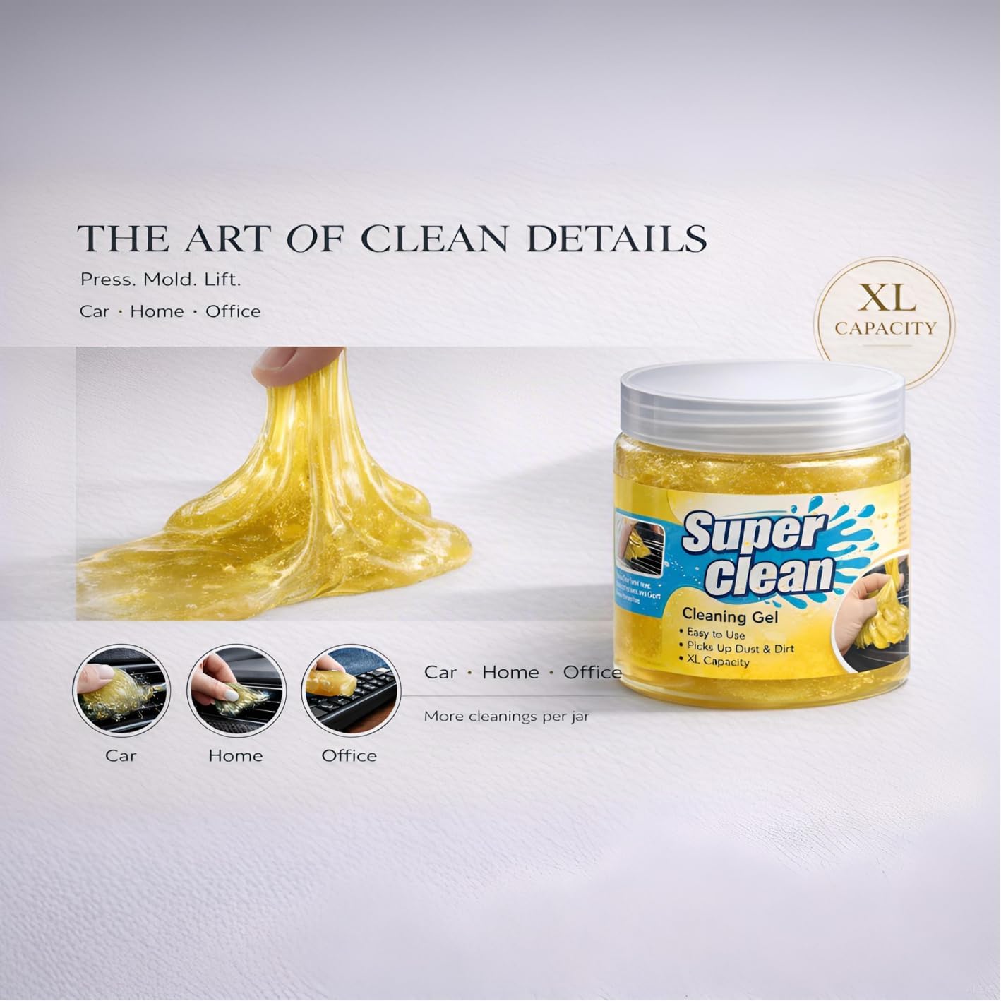【160g Non-Sticky Reusable Gel: 128% More Than 70g Bags】 Thick, residue-free gel sinks into deep gaps (charging ports, cup holders) to grab dust/crumbs. Reusable jar keeps gel fresh longer than flimsy bags—cost-effective for regular detailing