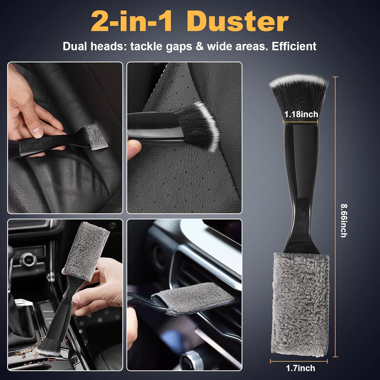 【Dual-Head Vent Brush: 30% Faster Gap Cleaning】 8.7-inch long handle with cloth (grease) + nylon brush (dust). Reaches air vents, door gaps & keyboard crevices—hard-to-reach spots that single-head brushes miss