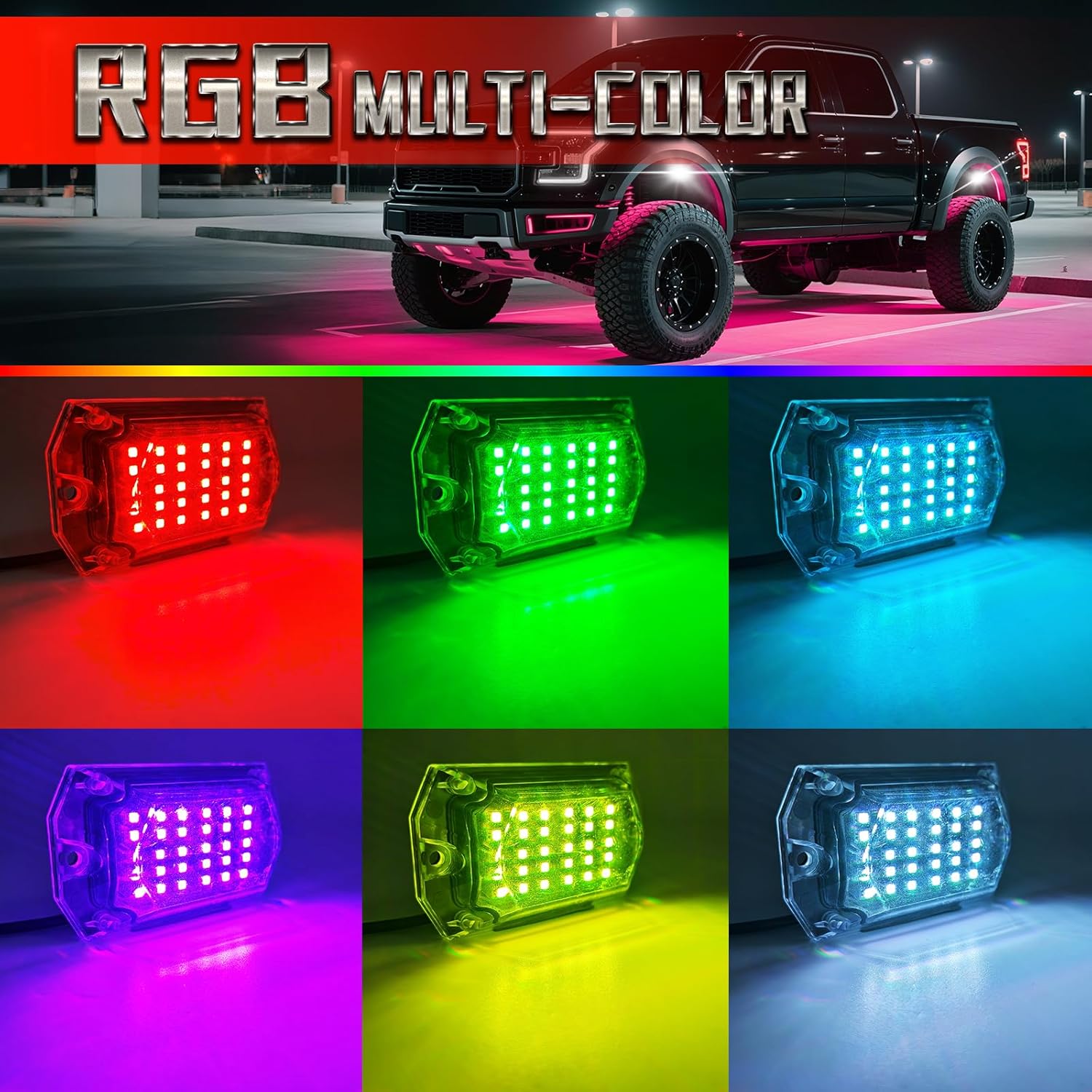 These 8 Pods Full Angle RGB LED Rock Lights completely transformed my truck! The brightness is incredible — each pod casts a wide, even glow, and the color options are endless. The Bluetooth app is super easy to use, letting me switch colors, patterns, and brightness levels right from my phone. The RF remote is a nice backup for quick changes.Installation was straightforward, and the waterproof design gives me peace of mind for off-road trips, rain, or even mud splashes. The lights are tough, and I’ve already taken them through rough terrain without a single issue. They stick firmly where mounted, and the wiring is solid.At night, the underglow effect turns heads everywhere I go — from solid colors to flashing multicolor patterns, it’s like my own mini light show. Perfect for trucks, Jeeps, ATVs, and more. If you want to add style, visibility, and a little wow factor to your ride, these are absolutely worth it!