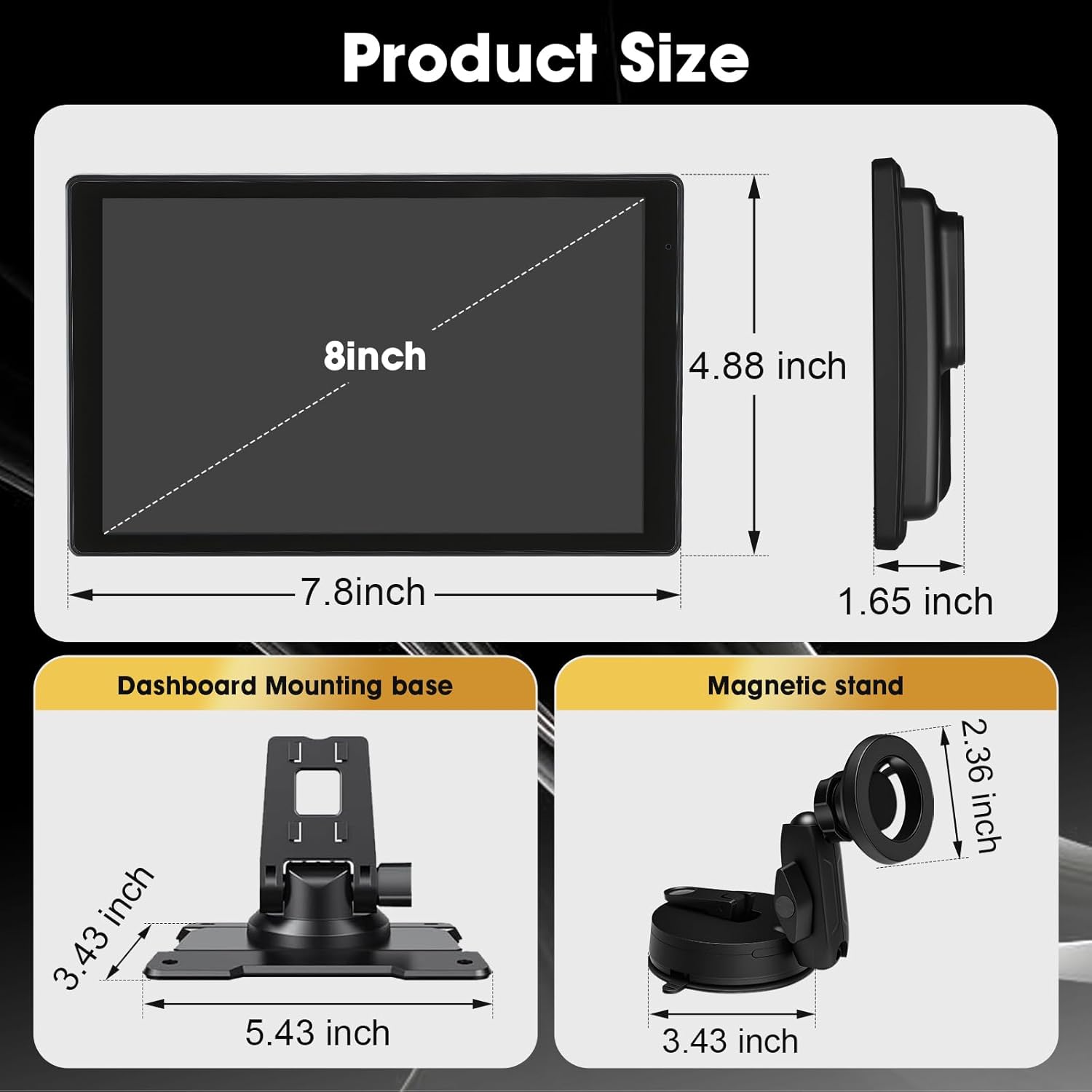Unique Magnetic Mount: The easy-to-install mount enables quick removal when needed. Unlike competing products that obstruct your view, the magnetic mount allows you to install the screen below the dashboard, keeping your view clear and your car’s interior neat
