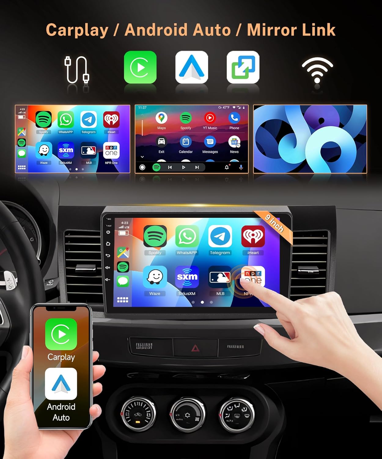 Wireless Carplay & Wireless Android Auto & Mirror link: for 2011 Mitsubishi Lancer car radio support use iPhone or Android phone wirelessly with the device, and control your phone’s apps. can make calls, send messages, play music, navigate with just your voice or touch. for 2012 Mitsubishi Lancer car radio support IOS/Android mirror link, use USB cable or WIFi, mirror your phone’s screen on the device’s display, You can use your phone’s apps, music, videos, etc on the device.