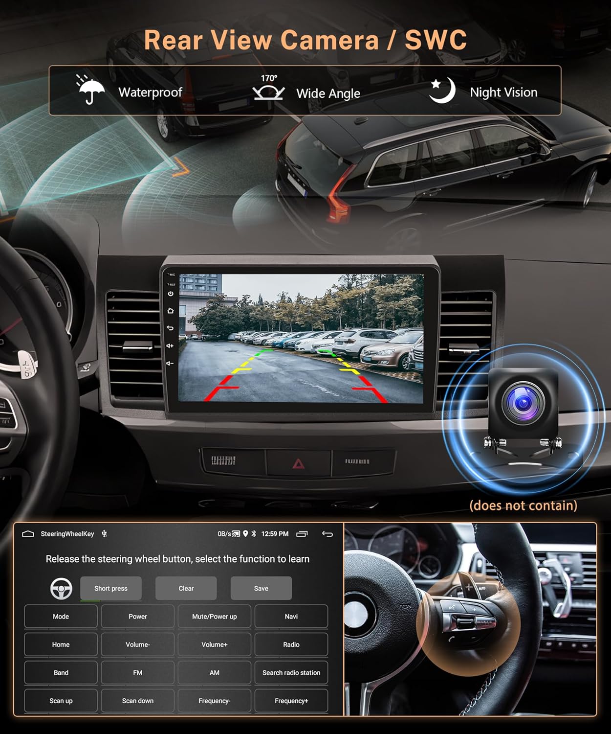 Reversing camera and Extra features: for 2014 Mitsubishi Lancer car stereo connect a reversing camera to the device via video input port, and view the rear view of your car on the device’s screen when you shift to reverse gear. This helps you park safely and avoid obstacles. Support Intelligent voice assistant Network radio, Global Weather display funtion, escort for your travel. Note: Requires additional purchase to use.
