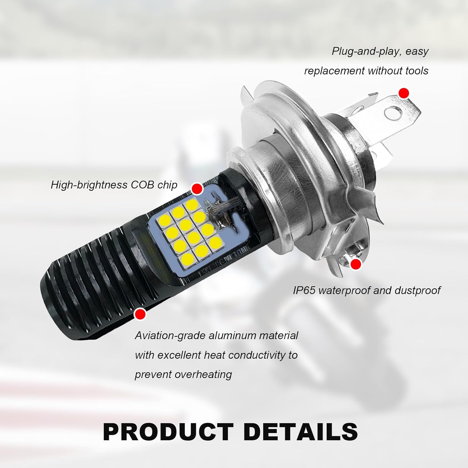 Scope of Application: These bulbs are specially designed for motorcycles and can be used as headlamps for motorcycles. It can directly replace the original halogen bulbs of motorcycles, providing stable and high-brightness lighting effects whether for daily commuting or night riding