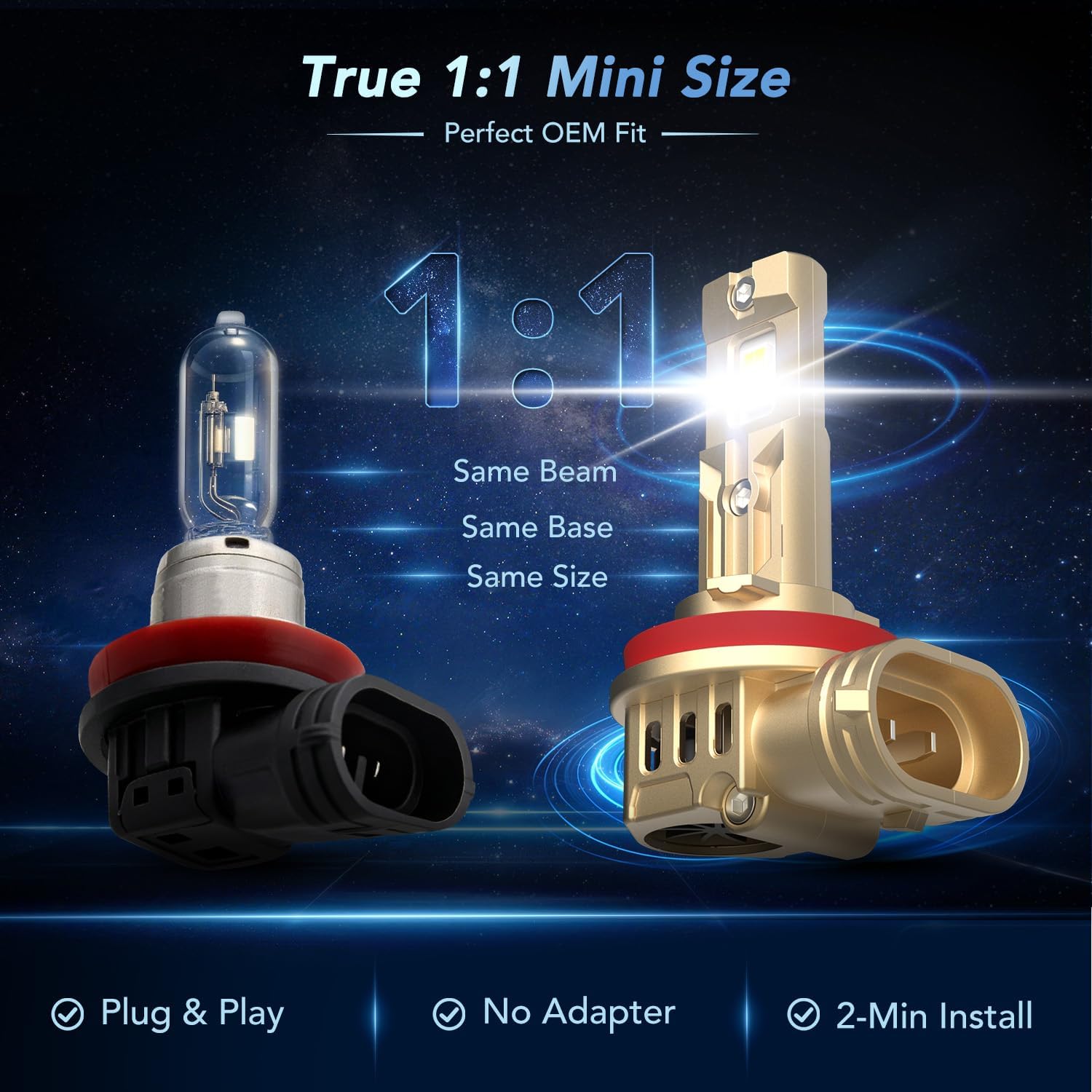 【1:1 Direct Fit, Plug & Play】Mini size matches factory bulbs. No external drivers or extra wiring. Install in minutes—just twist, lock, and go