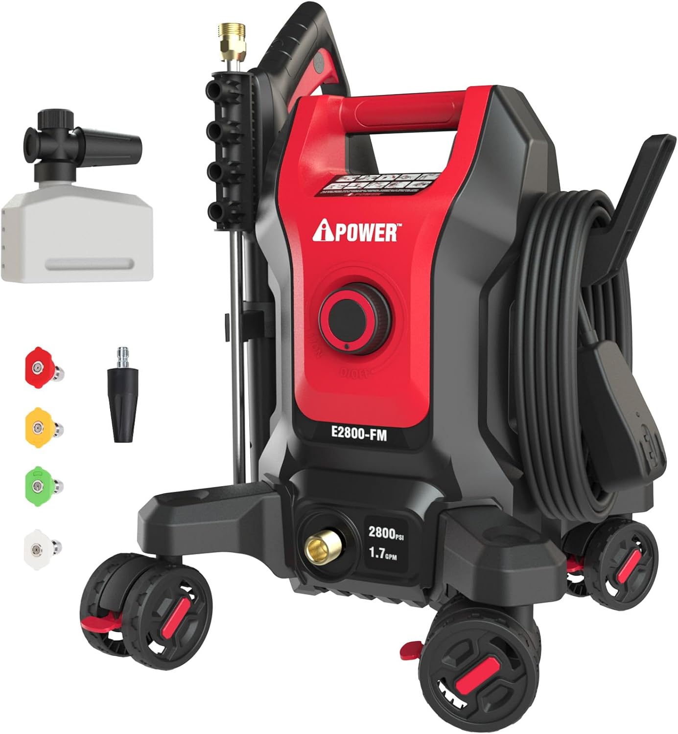 2800PSI Max Pressure: A-iPower electric pressure washer delivers 2800 max PSI (at initial discharge) and 2000 rated PSI to provide deep-cleaning possibility for each user. Max 1.7 GPM with soap dispensing and rated 1.2 GPM of water flow