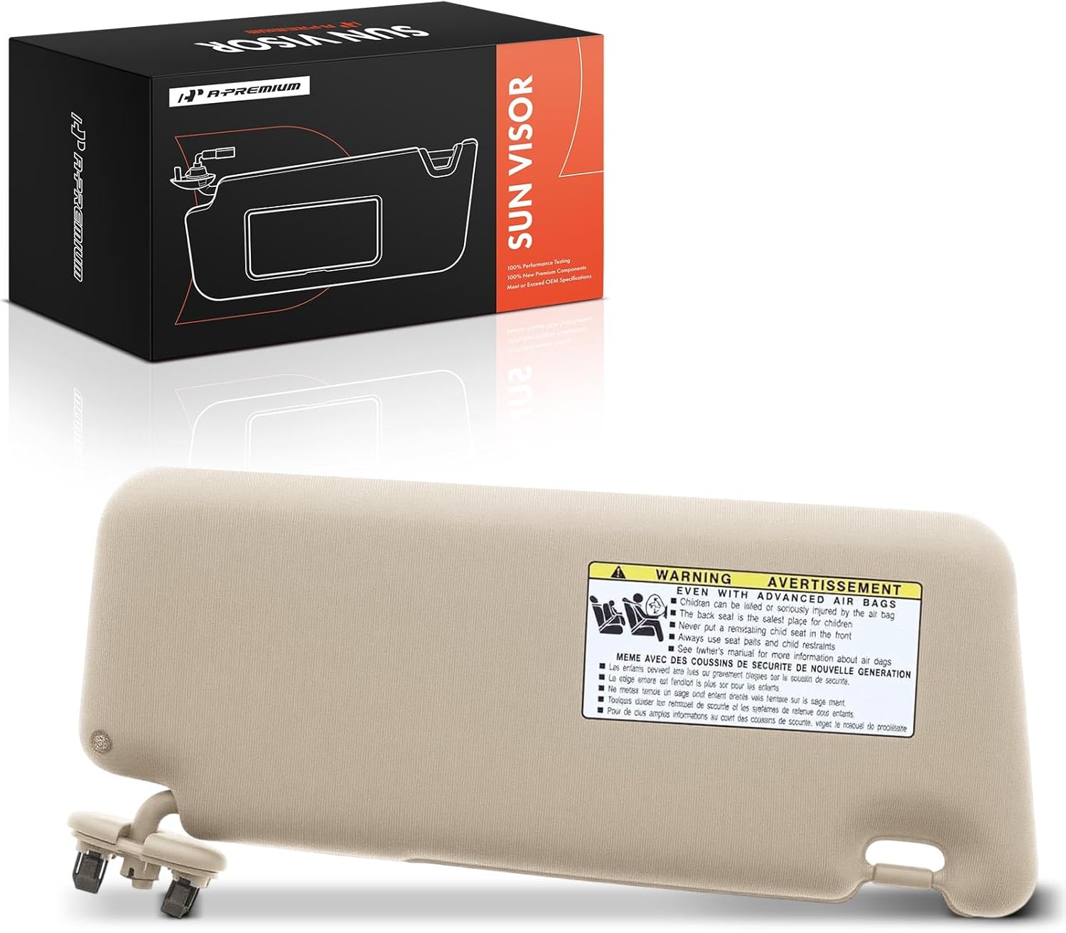 A-Premium Driver Left Side Sun Visor Compatible with Toyota Camry 2007 2008 2009 2010 2011 – with Vanity Mirror, Without Vanity Light, Beige Color – Replaces 74320-06780-E0, 7432006780E0