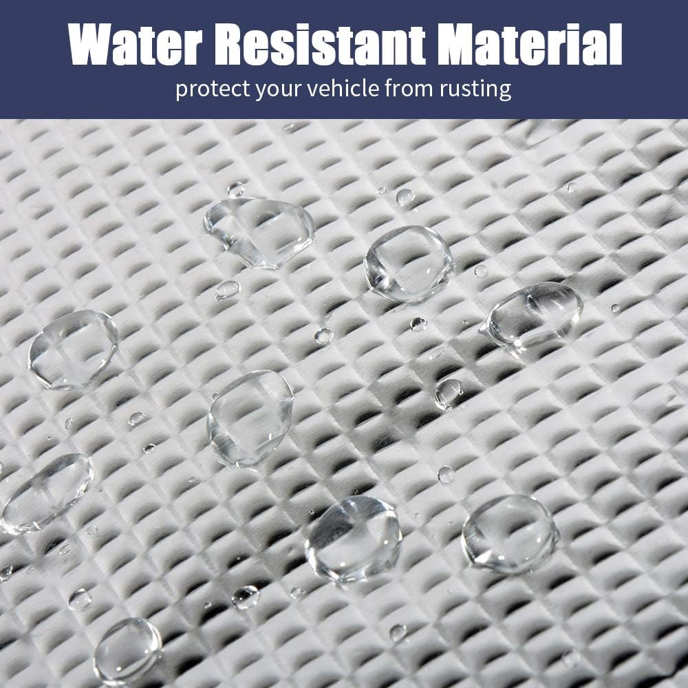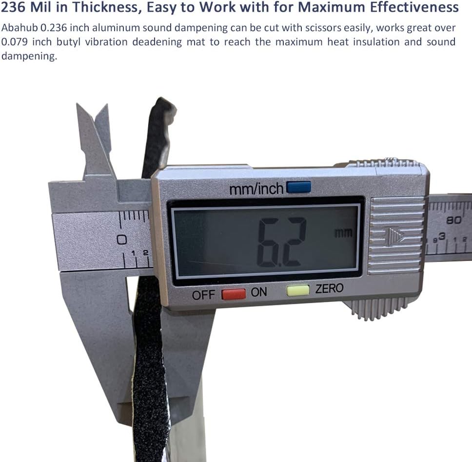 Abahub aluminum coating foam deadening material provides thermal insulation and sound dampening, which reduces the vibrations of the vehicle, rattling of loose metal parts and other outside elements including the wind, decreases road noise and helps reduce ambient noise for a quieter cabin environment.