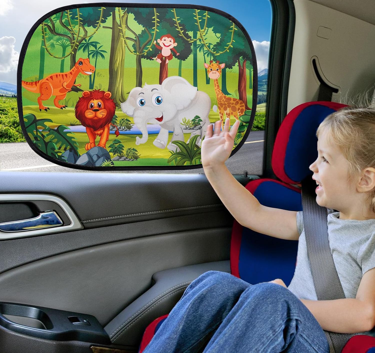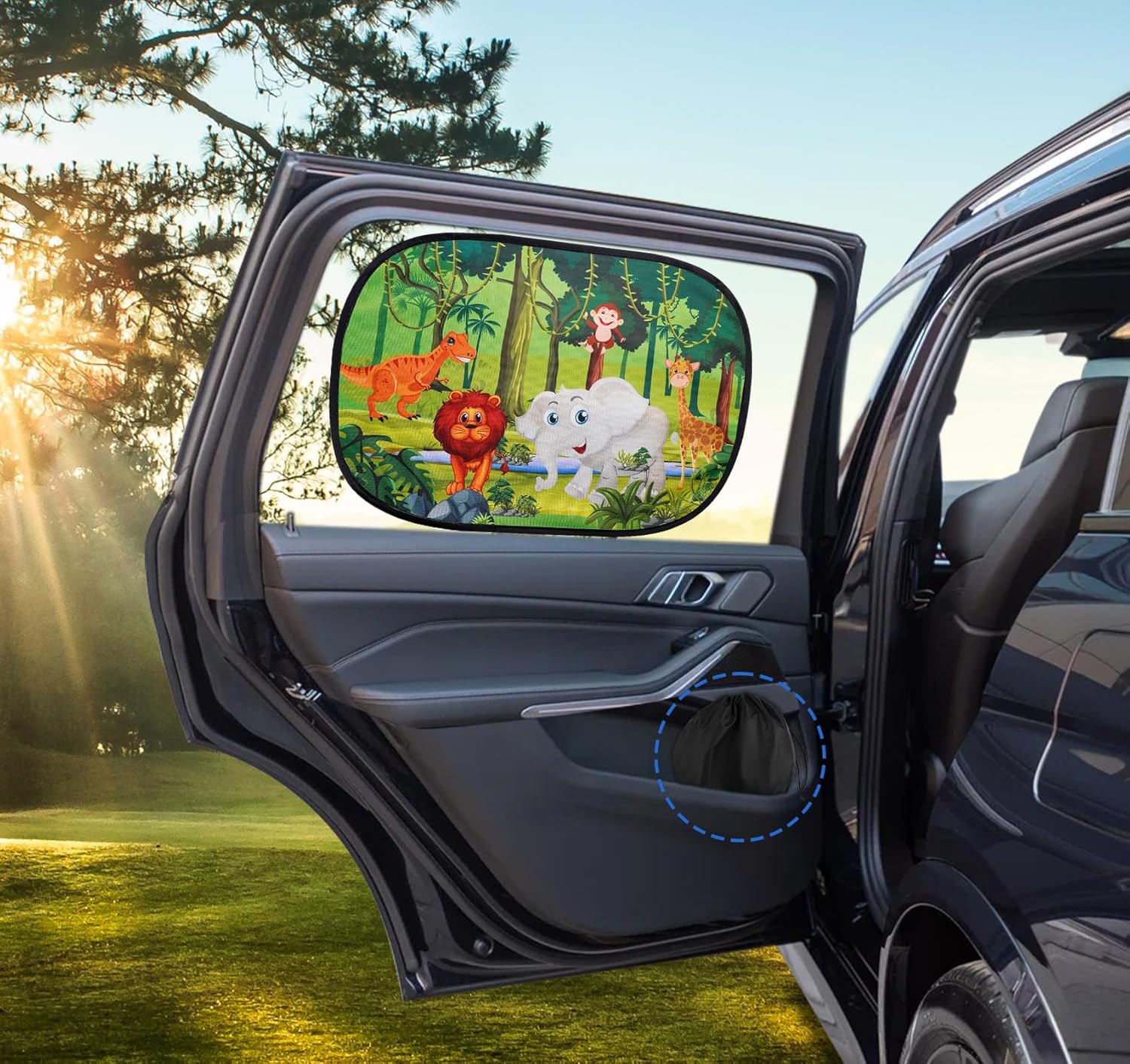 Classic Animals Cartoon Design: Featuring a vibrant “Animals Cartoon” color theme, these sunshades add a dynamism to your car’s interior while providing reliable sun protection. These sunshade for car window block harmful UV rays while ensuring optimal airflow, keeping your car cool and comfortable.
