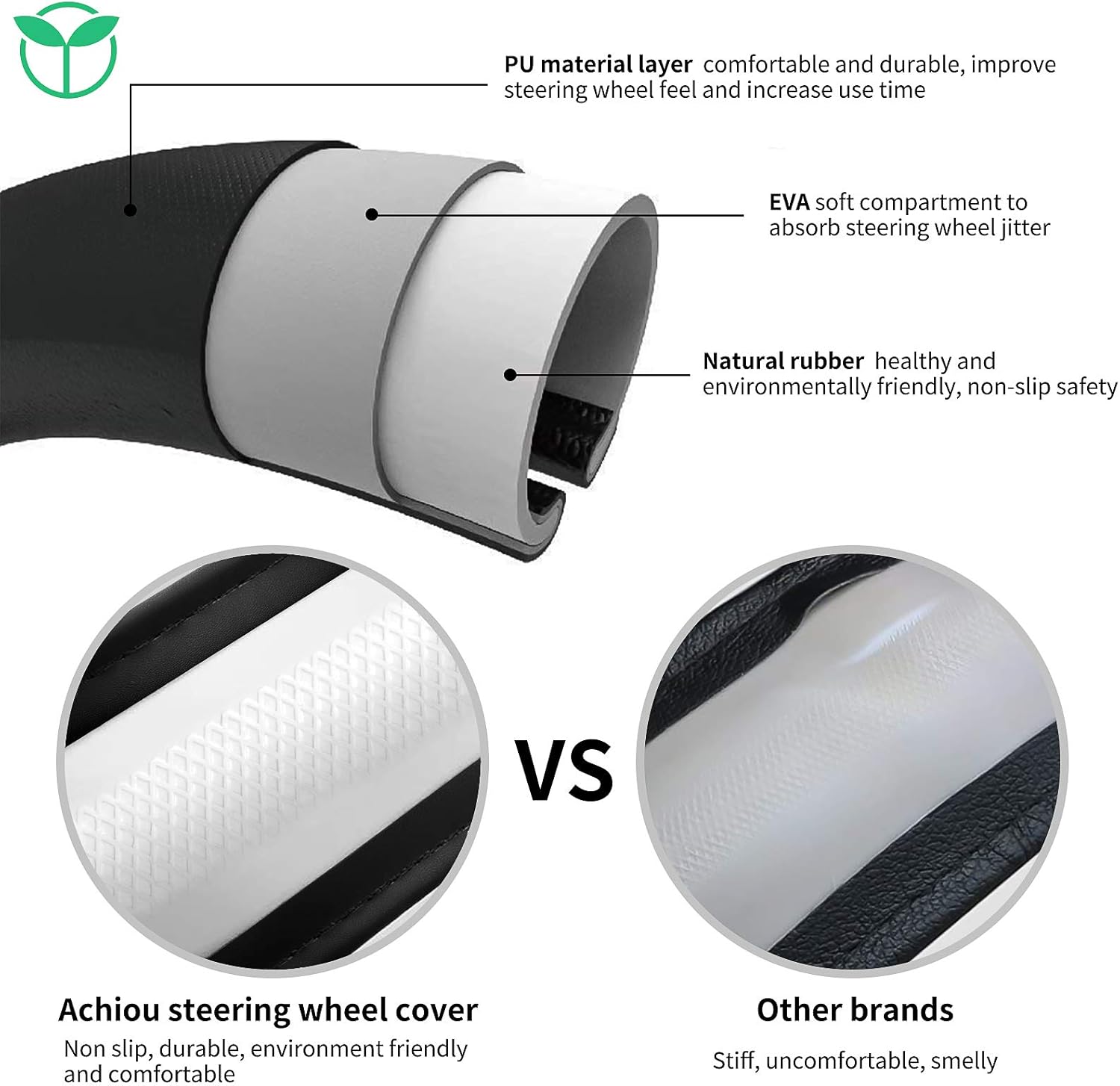 Excellent Anti-Skid – Achiou steering wheel covers comes with a high-quality rubber underneath to absorb vibration and give a better grip
