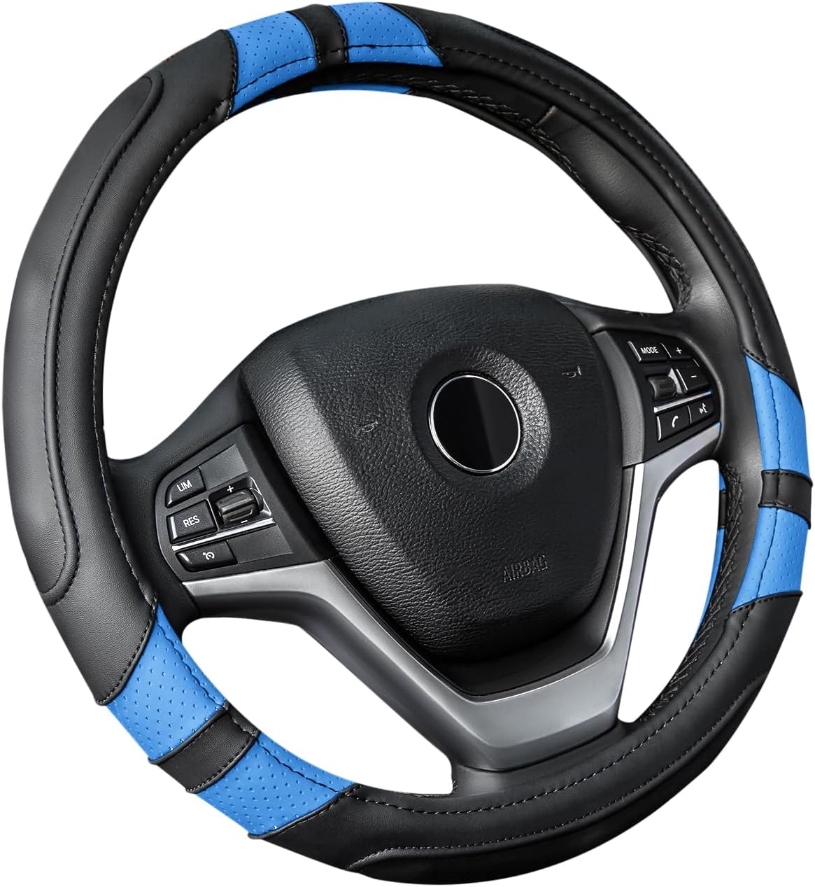 without a cover, the steering wheel tend to hurt my husband’s hands. This steering wheel cover made it all better. He loves it and the blue is beautiful. The installation was easier than others I’ve used previously. Shipping was fast and packaging was very protective.