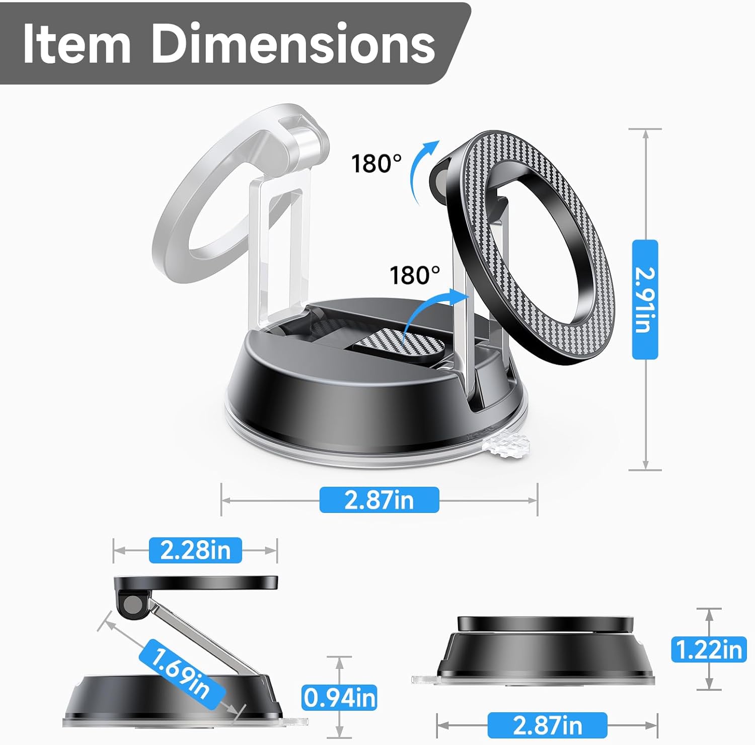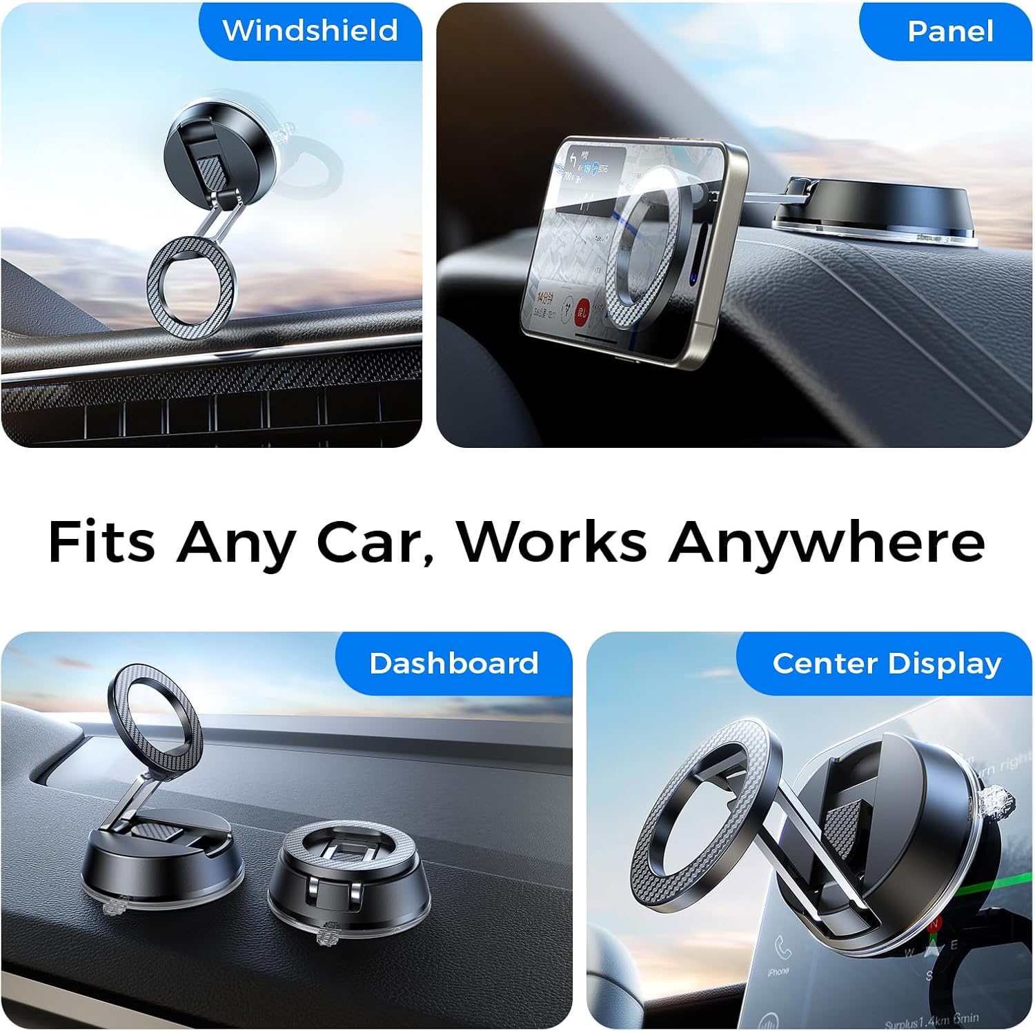 ACMEZING NeverFall Car Phone Holder for MagSafe [78+LBS Ultra Grip | 2400gf Magnetic Power] 360° Foldable Car Mount Cell Phone Holders for Your Car for iPhone 17-12 & All Speakerphones, Carbon Fiber