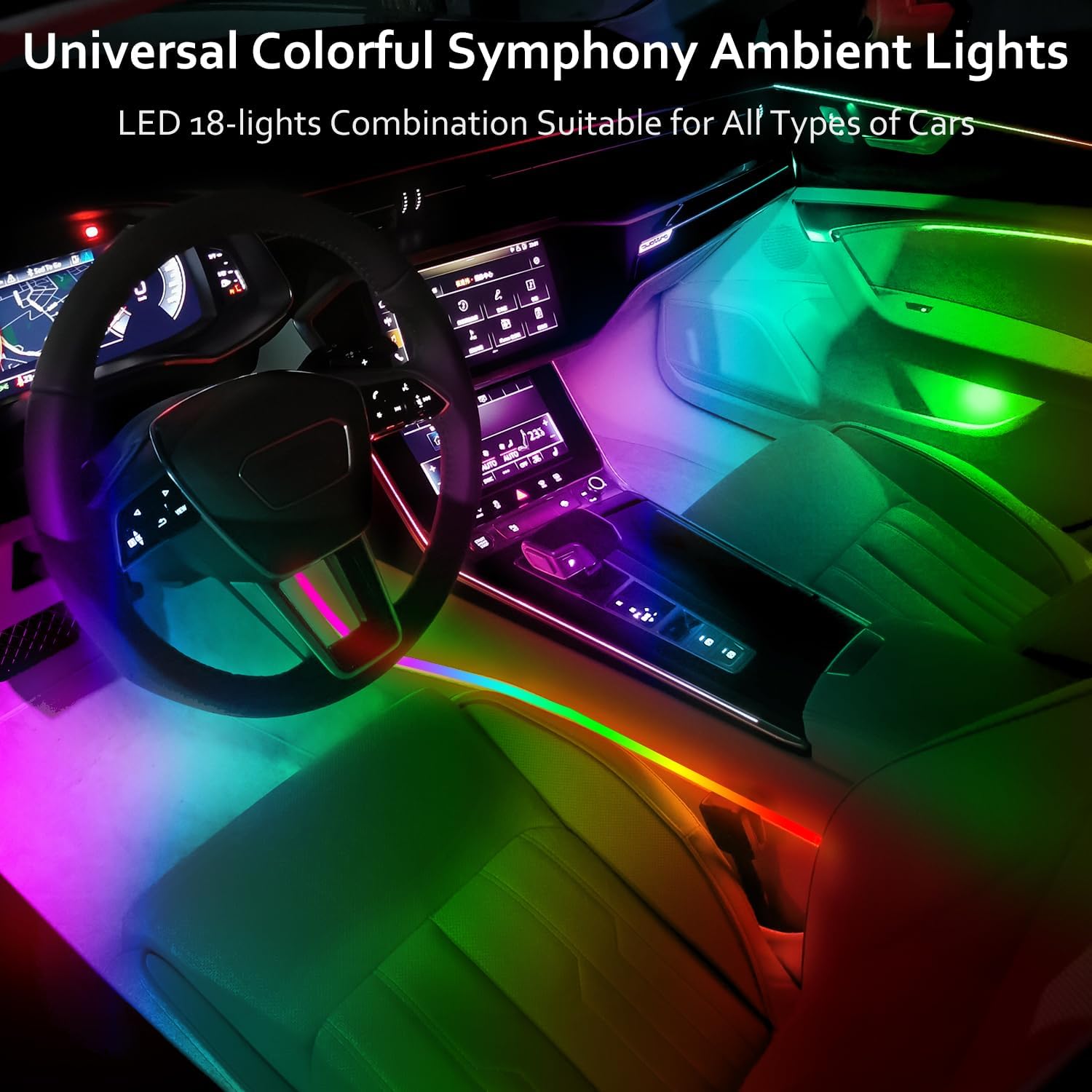 18-in-1 128 Colorful Symphony Car Ambient Interior LED Strip Lights