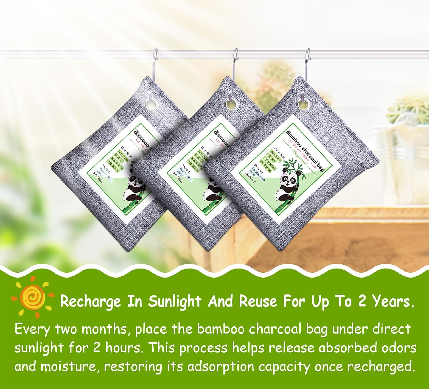 ELIMINATING ODORS PURIFYING AIR – Activated charcoal odor absorber is made from natural bamboo fired at 2000 degrees high temperature, with a highly porous structure, which can quickly absorb odors and excess moisture in the air and purify and decompose, Make your car, home, room, bathroom, basement, closet, refrigerator, drawer, sneaker, trash can, or gym bag no longer have unpleasant odors. Our natural odor eliminator for strong odor are 10 times more powerful than ordinary home deodorizer, Bamboo charcoal bags odor eliminator truly absorb odors and moisture naturally instead of masking odors with additives.