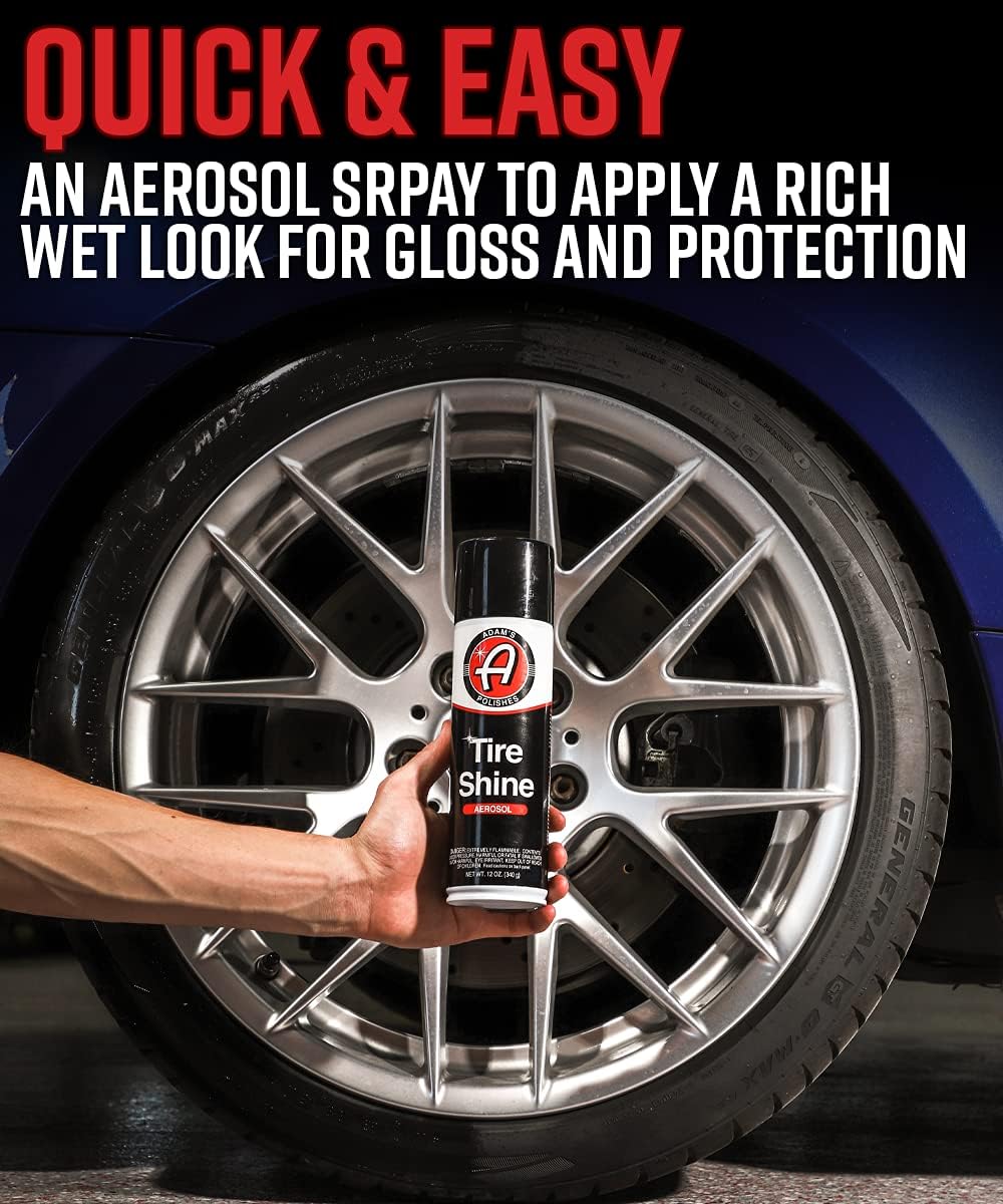 Adam’s Polishes Aerosol Tire Shine 12oz – Fast, Easy, Effective Way to Add Gloss – No-Sling Use with or Without Tire Applicator