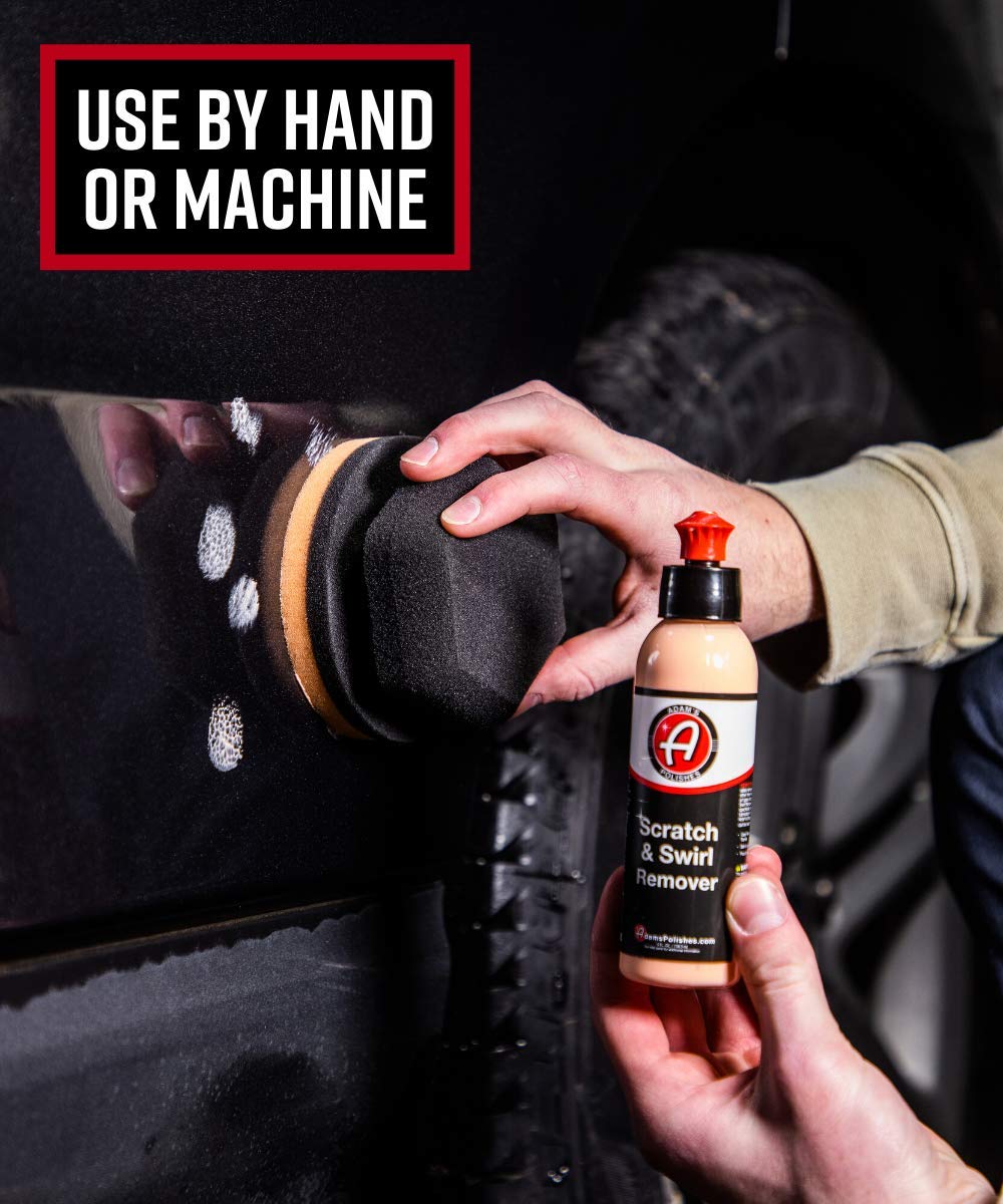 Adam’s Scratch & Swirl Remover was formulated specifically to provide sufficient lubrication and polishing by hand with Adam’s Orange Hex-Grip Polishing Applicator, but is also plenty suitable to use with Adam’s Swirl Killer Polishing systems and a White Foam Polishing Pad.