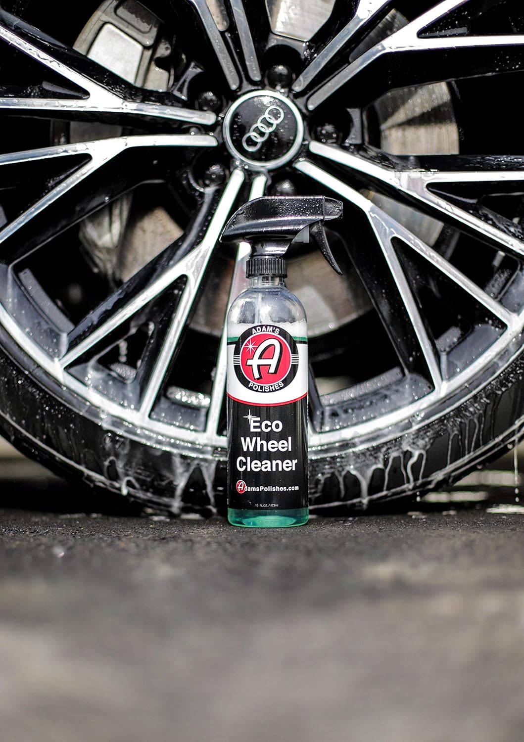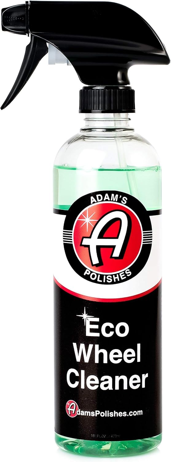 Adam’s NEW Eco Wheel Cleaner is a wheel cleaning formula combined with the cleaning technology of our Eco All Purpose Cleaner, making it the perfect option for cleaning delicate wheel finishes. Adam’s Eco Wheel Cleaner will not stain your wheels. Whether your wheels are matte black, polished aluminum, chrome, powder coat, or any other custom finish, this cleaner is safe on all wheel finishes, if you read and follow the instructions before use. Eco Wheel Cleaner contains no iron activator, which is the main culprit for staining wheels when used incorrectly. Naturally derived surfactants in this formula generate high-foaming, as well as high-wetting and detergent properties, that are safe for the wheel, tire, brake components, and the environment. Best of all, Eco Wheel Cleaner doesn’t have the pungent and lingering chemical smell associated with most wheel cleaners – no more smelly hands after a wheel cleaning session, as you enjoy a pleasant citrus scent instead! Adam’s Eco Wheel Cleaner pairs excellent with all our wheel cleaning tools, including the Adam’s Microfiber Wheel Wash Mitt, Adam’s Short Wheel Brush, Adam’s Wheel Woolie, Adam’s Turbo Stick, and Adam’s Trim & Lug Nut Brush. Clean one wheel at a time. Rinse wheel with a powerful blast from hose. Spray the wheel surface liberally with Adam’s Eco Wheel Cleaner. After the cleaner is applied to the wheel, agitate with Adam’s Wheel Brush or Adam’s Microfiber Wheel Wash Mitt. Be sure to use an Adam’s Wheel Woolie or Turbo Stick on the inside barrel of the wheel too. Rinse wheel and brushes thoroughly after cleaning each wheel. Do not let Adam’s Eco Wheel Cleaner fully dry onto any surface of the wheel or brake components. Dry wheels with Adam’s Master Blaster Revolution, Adam’s Blaster Sidekick, or a microfiber drying towel preferably dedicated to wheels only. COMMON SENSE WARNING: If you are using this product for the first time, test in an inconspicuous area to ensure no unusual results occur.