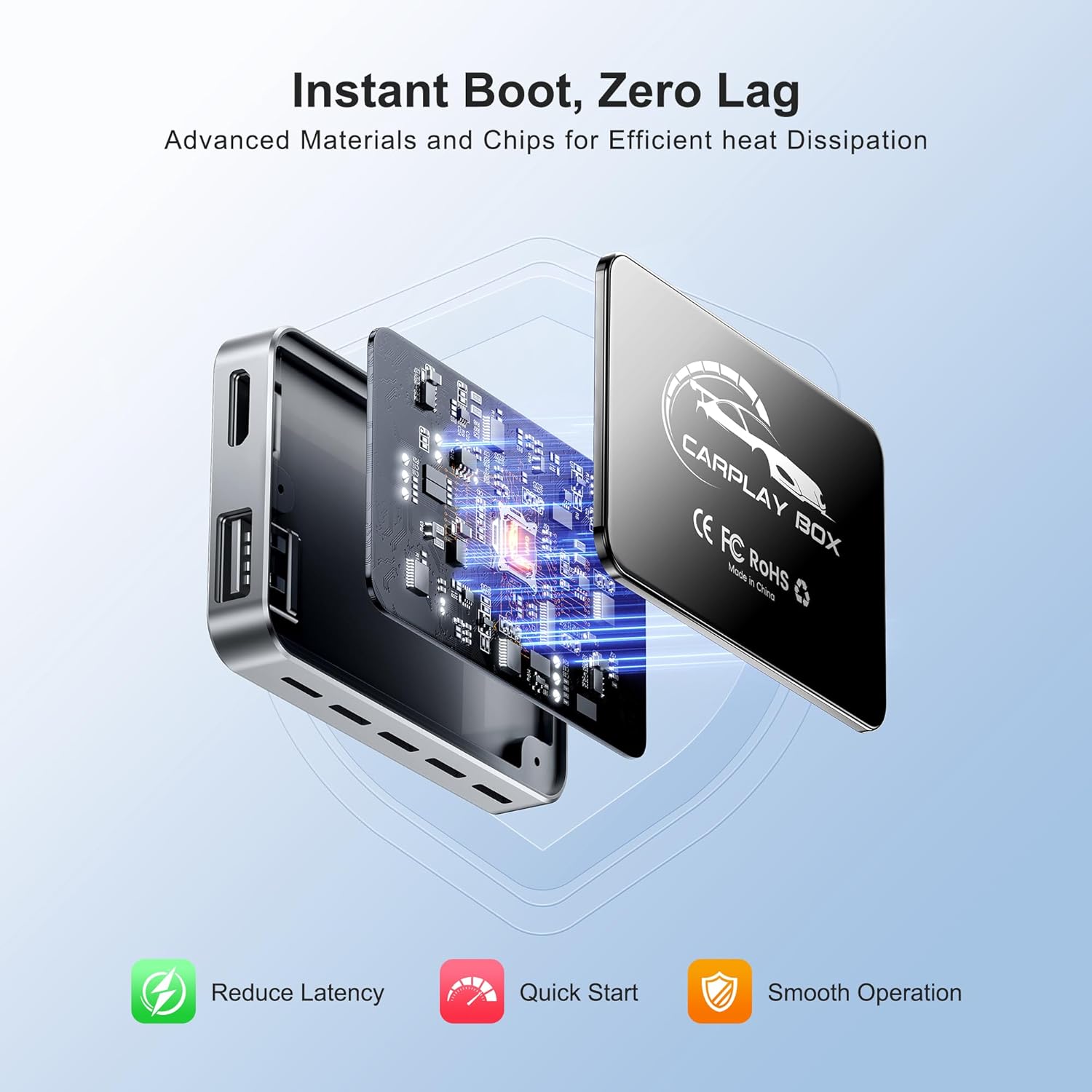 Wide Compatibility CarPlay AI Box – Plug & Play:This carplay AI box is compatible with most factory wired CarPlay vehicles.A reliable wireless carplay adapter solution for users who want video, navigation, and wireless freedom in one compact box.