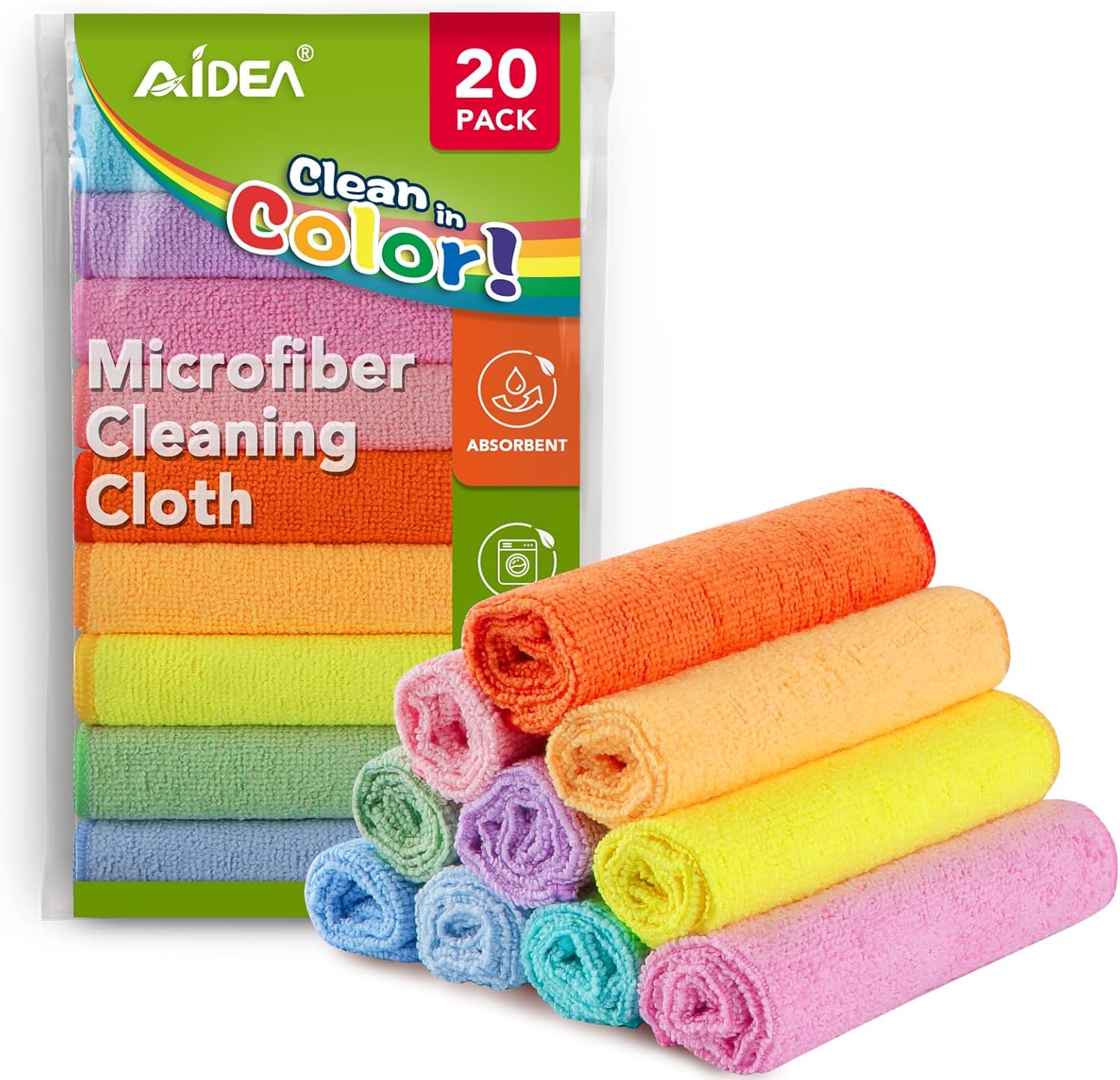 Premium Multi-Color Microfiber Cloth: AIDEA’s “clean in color” design shines with vibrant tones; made from premium material; offering exceptional absorbency and quickly wicking away water to keep you dry; ideal for swiftly and safely removing dirt, grime, and liquids