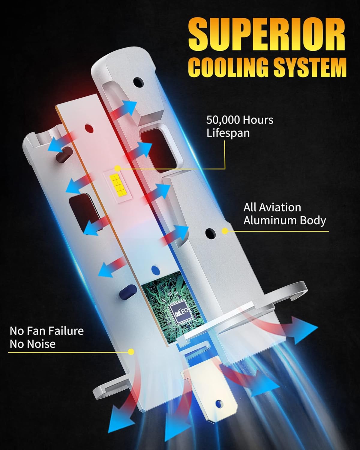 Excellent Heat Dissipation System: Full aviation aluminum design, superconducting copper substrate and IP68 waterproof design provide excellent heat dissipation, ensuring that AILEO H1 LED bulb can work perfectly in bad weather, greatly extending the service life up to 50,000 hours