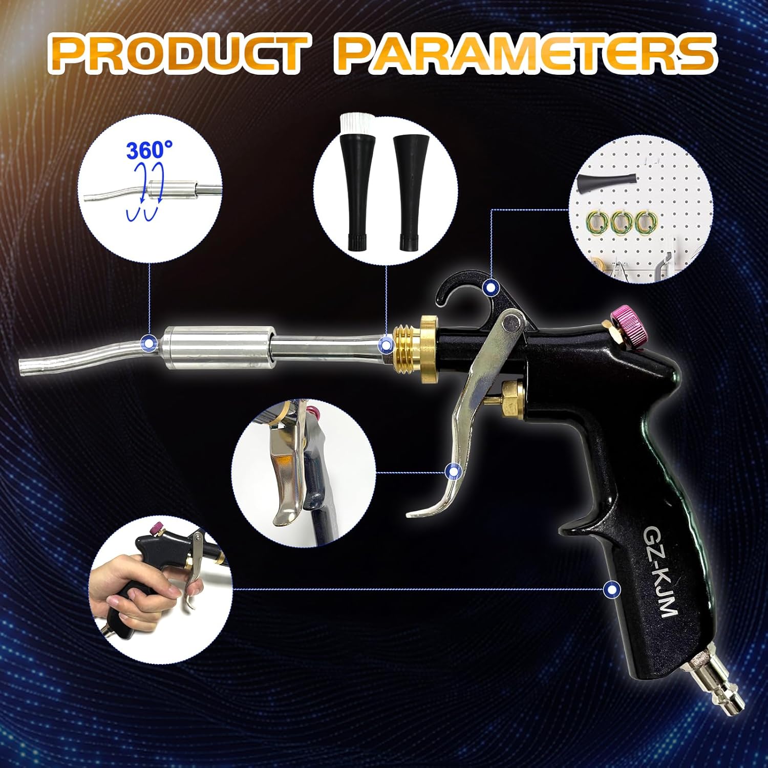 Versatile Nozzle Design: Equipped with a carefully crafted nozzle, our cleaning gun offers versatility in targeting specific areas. Whether you’re cleaning tight corners or large surfaces, the adjustable nozzle ensures precise airflow for maximum cleaning efficiency.