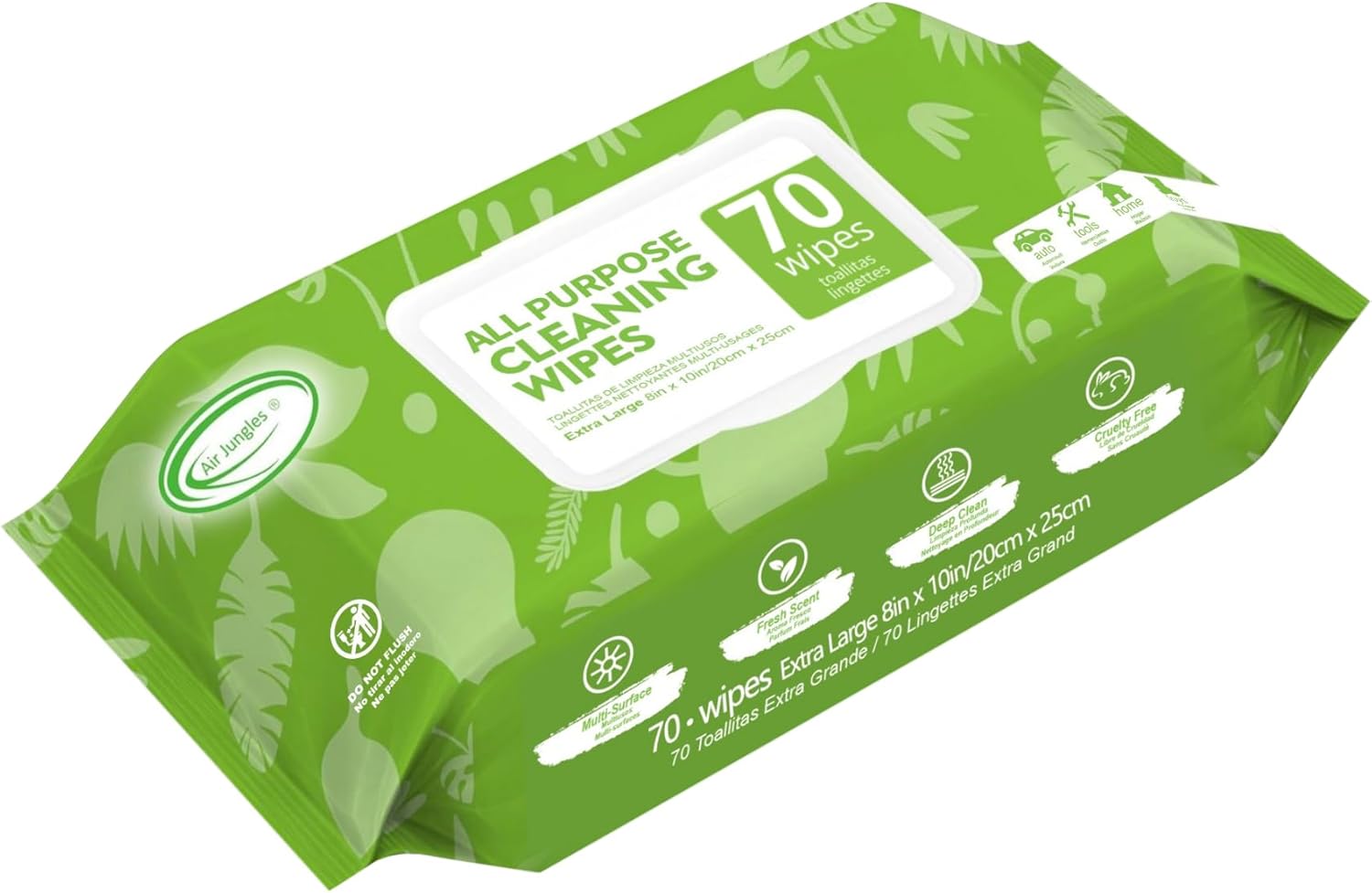 Air Jungles All Purpose Cleaning Wipes 70 Count, Bleach Free Extra Large 8″ x 10″ Heavy Duty for Car Interior, Kitchen, Bathroom, Countertop, Office, Tools – Non-Toxic Safe for Multi-Surface