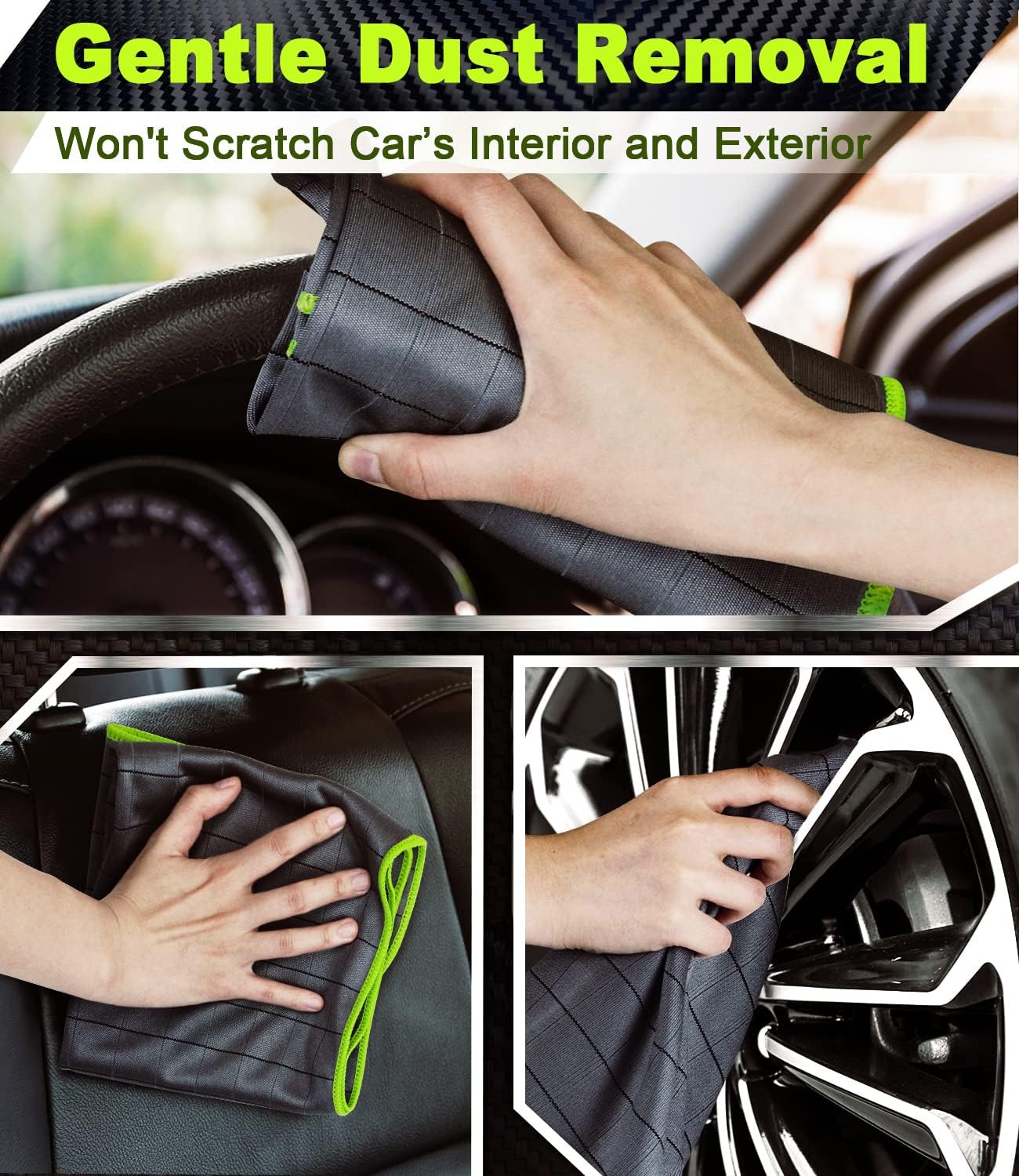 Carbon Fiber Technology: Made with highly absorbent, and non-abrasive microfiber material, these cleaning cloths prevent scratches on surfaces, ensuring a gentle and safe cleaning experience, leaving your car’s finish spotless and streak-free