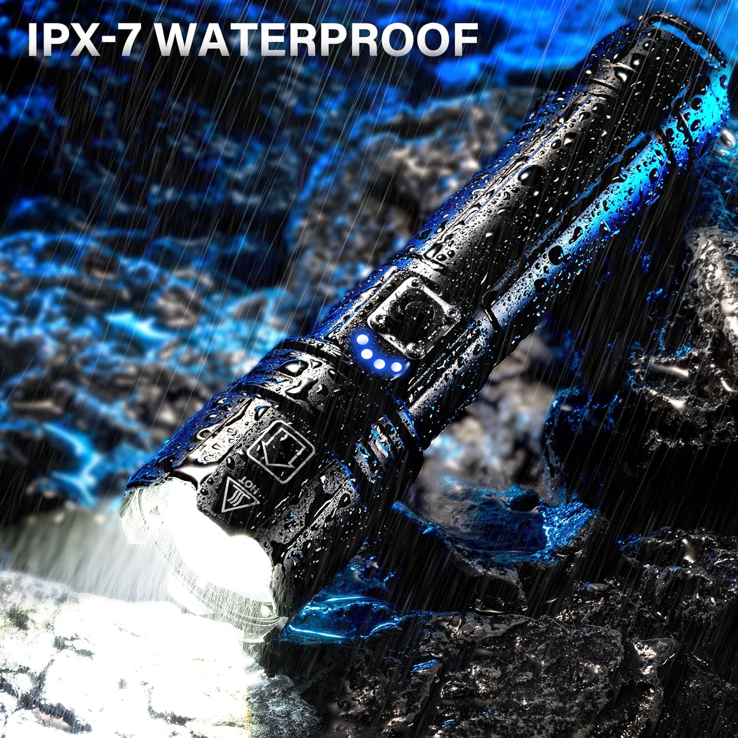𝐑𝐚𝐢𝐧𝐬𝐭𝐨𝐫𝐦 𝐖𝐚𝐭𝐞𝐫𝐩𝐫𝐨𝐨𝐟 & 𝐒𝐮𝐩𝐞𝐫 𝐃𝐫𝐨𝐩 𝐑𝐞𝐬𝐢𝐬𝐭𝐚𝐧𝐭: Tactical flashlight has a sealed waterproof rubber ring design, which flashlight have rainstorm waterproof performance suitable for the outdoor environment. AKNEAR handheld flashlights shell is made of hard military aluminum alloy, which is very resistant to falling, flashlight can withstand the rolling of the wheels