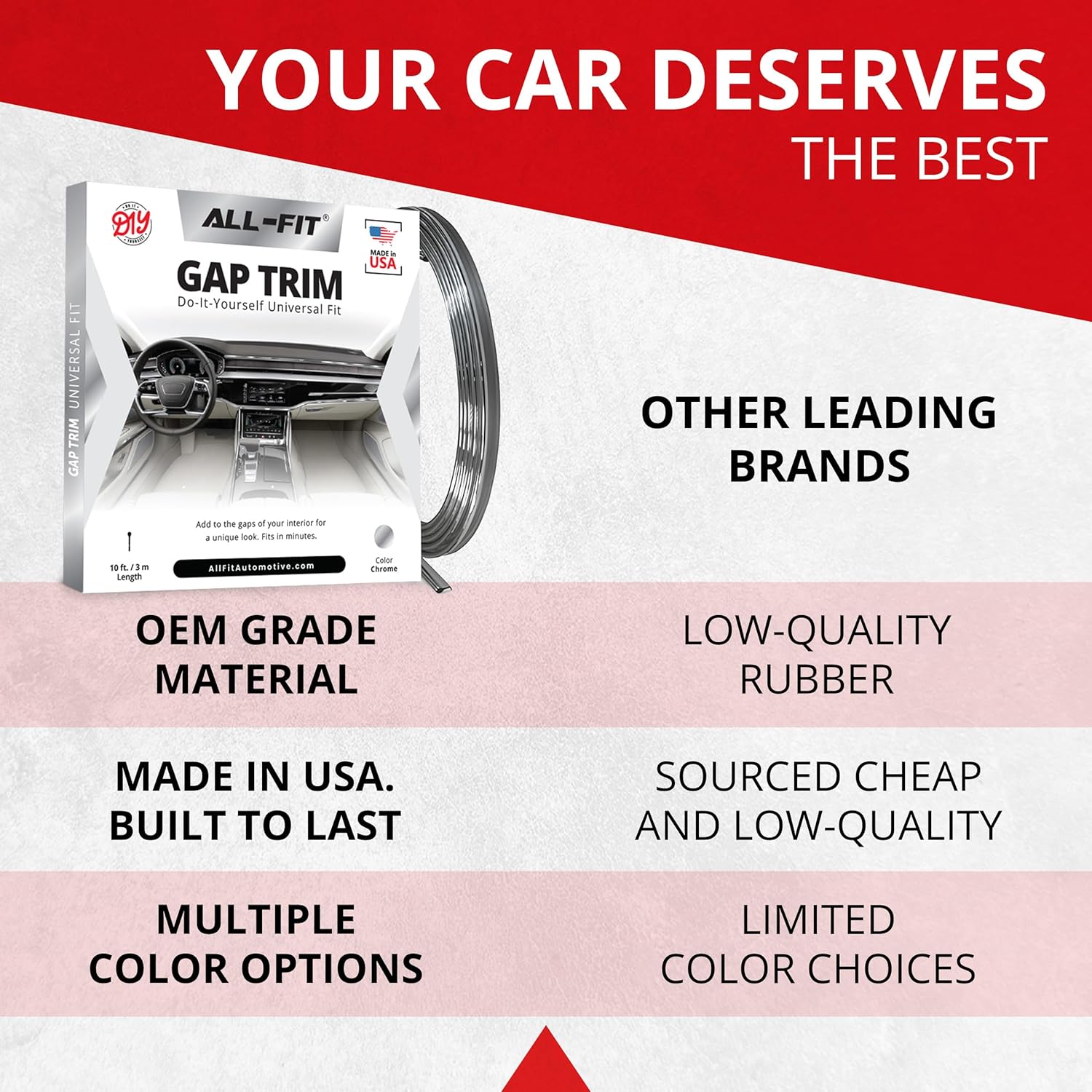 Durable, Flexible Trim Molding: Crafted from superior OE-grade material, this car interior trim strip adapts effortlessly to vehicles contours; resistant to wear, car washes, and temperature changes for long-lasting results