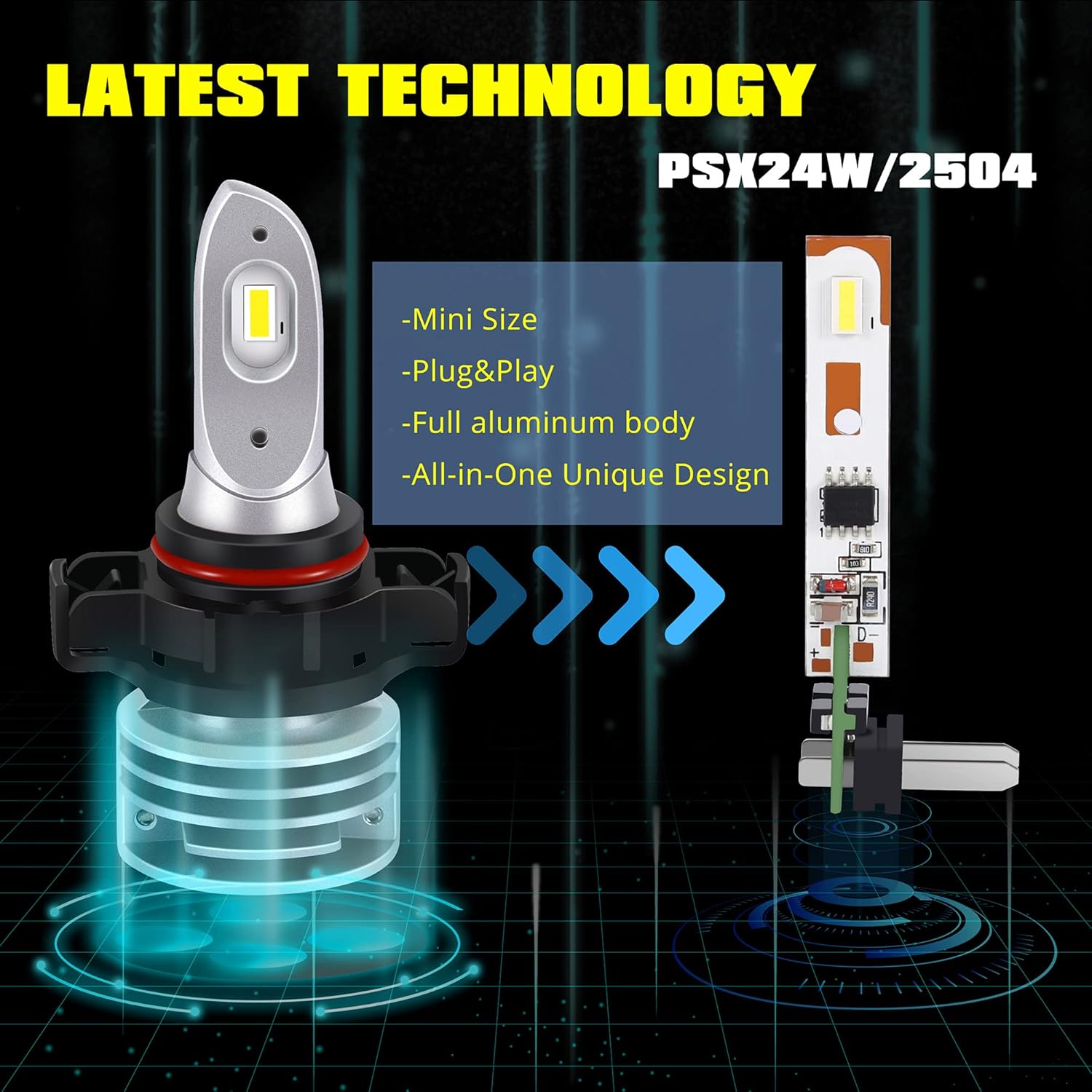 (Set of 2) LED Chips: Equipped with high quality, high power NEWest 1860 SMD per 12278/PSX26W LED light bulb.Each LED bulb is about 2600 lumens, total 5200 lumens for both 12278/PSX26W LED fog lights bulbs.