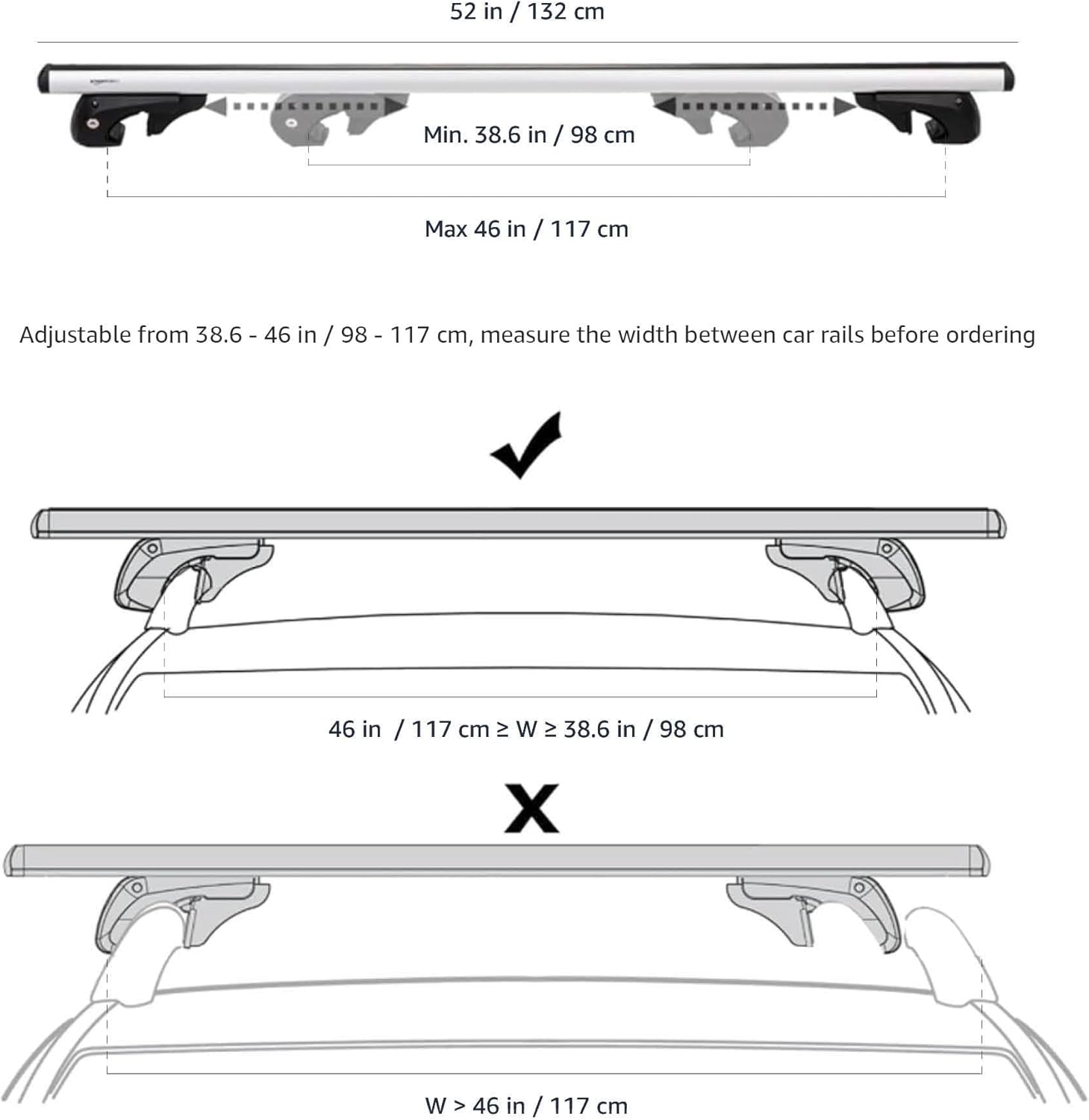 Amazon Basics Cross Rail Roof Rack, 52 inches, Fits up to 46″ Spans between Raised Side Rails with Gap, Pack of 2, Black/Silver
