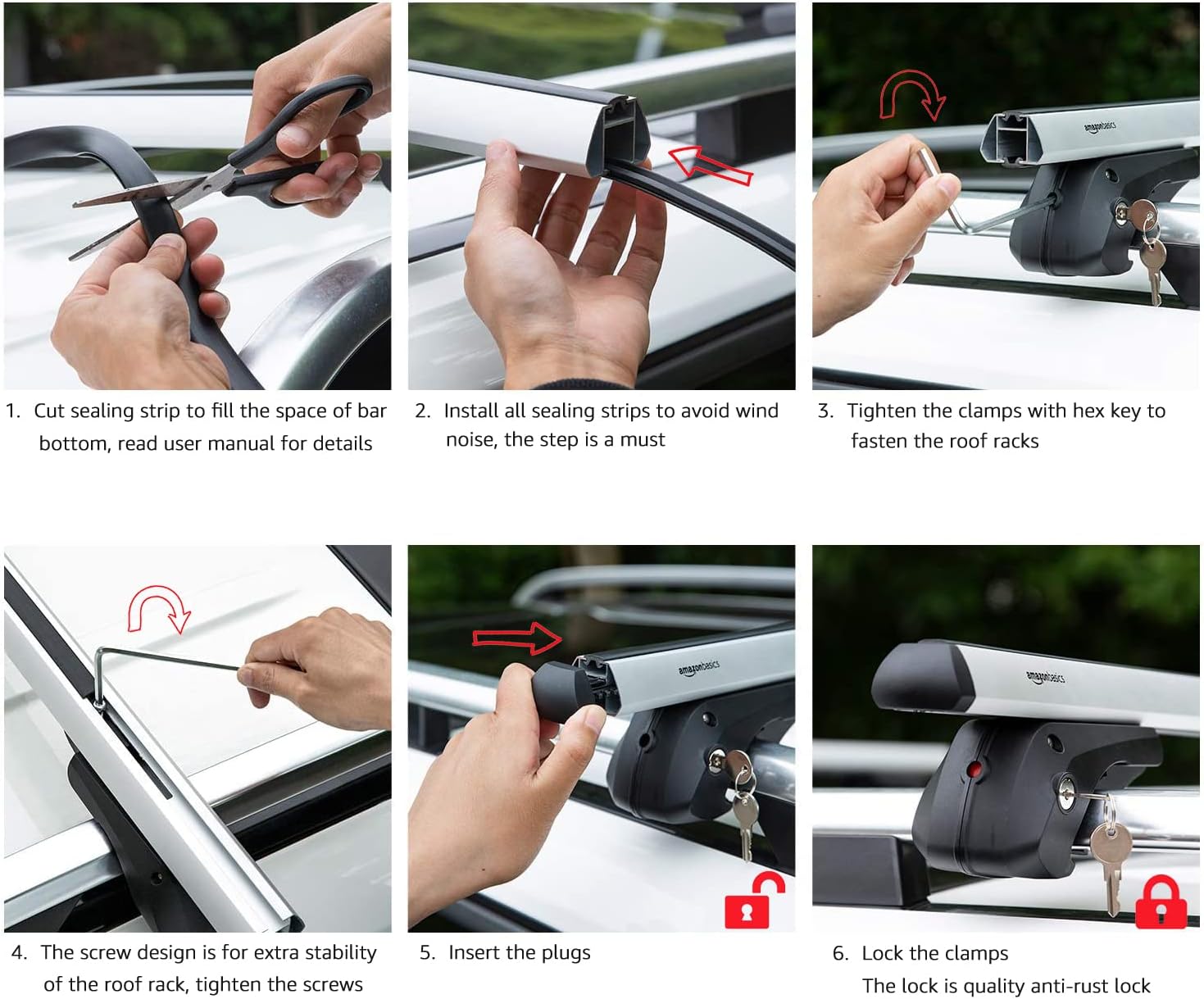 These Amazon Basics Cross Rails are impressive. They appear to be well made of quality materials. Installing was easy, straightforward. There is a sequence that when followed makes the installation rather simple. But as is often the case with many Chinese-made products, the instructions were not helpful in discovering the simple sequence. But still I was able to secure the racks to the roof of my 2012 Highlander without much backtracking, and in under 30 minutes. Also I believe removing the rails will be easy and re-installing them easy as well.So, I loaded one of my surfboards and took off down the highway for a test run. The Rails held the board securely. Also I was pleasantly surprised by the lack of wind noise. Bottom line? The Amazon Basics Cross Rails are priced right, easily installed, look good, are well made, and work as designed. BTW, so far I have been impressed with products in the “Amazon Basics” line.
